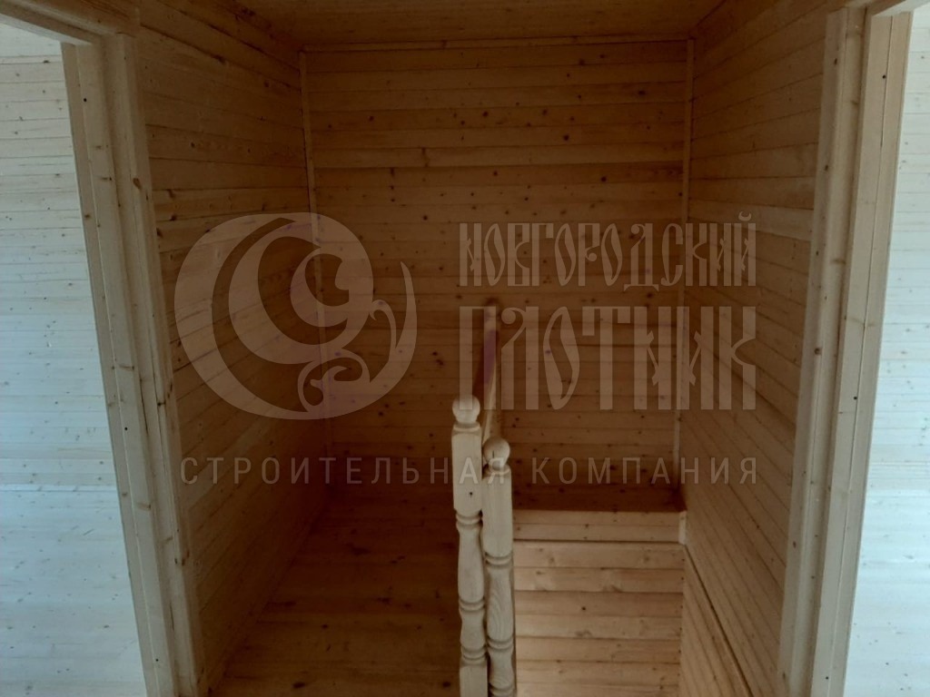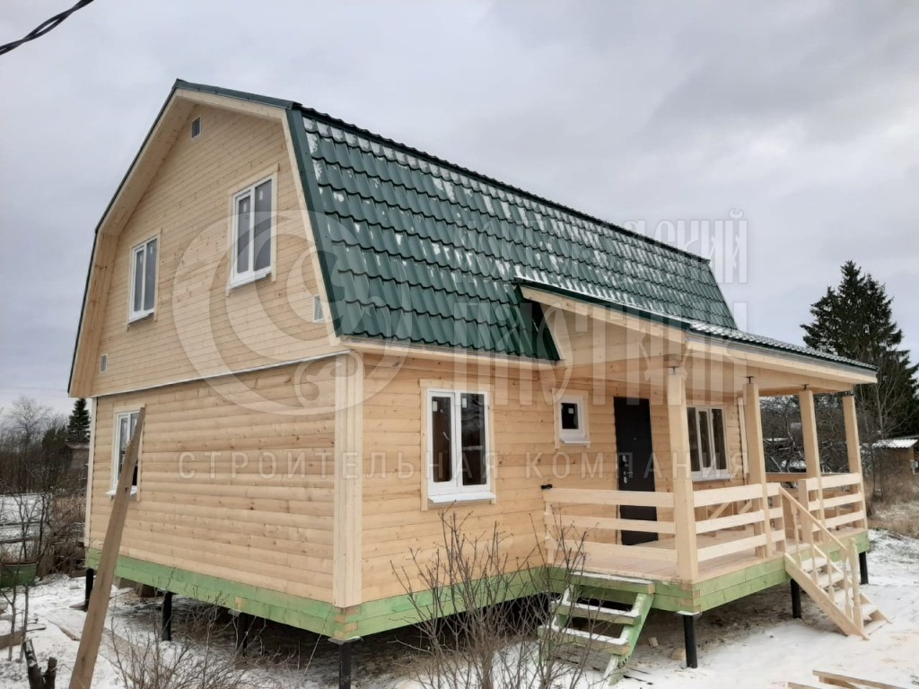 В марте 2020г. завершилось строительство брусового дома с мансардой. Дом построен на основе проекта Д-66. В проект были внесены небольшие изменения (вместо крыльца сделали открытую террасу). Стены 1-го этажа выполнены из профилированного бруса 140х140мм (профиль полуовал), мансарда каркасная, обшитая с обеих сторон вагонкой (утепление минвата Изовер 100мм). Окна ПВХ двухкамерные. Кровля металлочерепица.