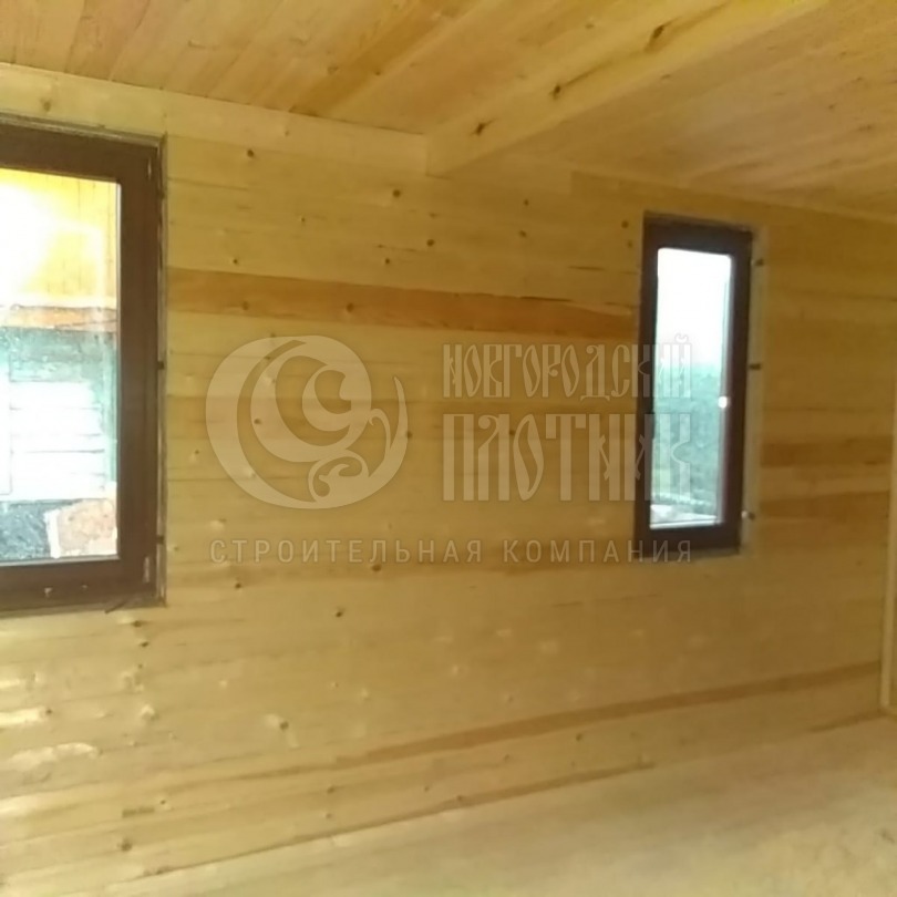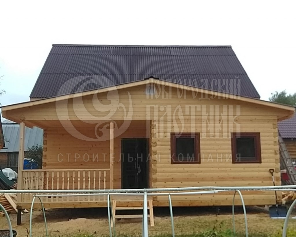 Строительство дома завершилось в сентябре 2018г. Стены 1-го этажа и простенка выполнены из профилированного бруса 140х140мм (профиль полуовал), мансарда каркасная. Покрытие крыши - ондулин. Окна предоставлены Заказчиком.