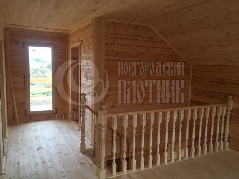 Строительство дома завершилось в октябре 2018г. К проекту Д-34 добавлена терраса 3х8м, часть террасы зашита под котельную. Стены дома выполнены из профилированного бруса 140х140мм (профиль прямой), перегородки из бруса 90х140мм. Покрытие крыши - металлочерепица Монтерей (цвет шоколад). Окна ПВХ двухкамерные, выполнены под заказ.