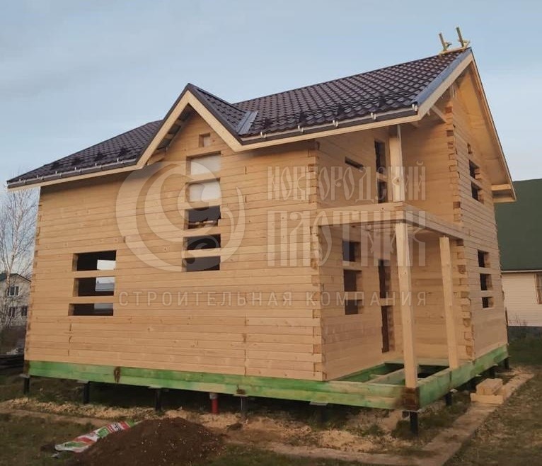Брусовой дом 8х9м под усадку (проект Д-72)