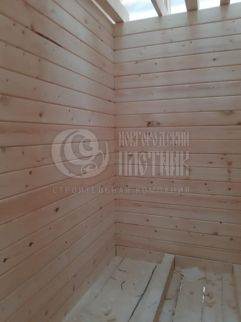 В декабре 2020г. построен дом под усадку под материнский капитал. Стены 1-го этажа выполнены из профилированного бруса 140х140мм (профиль прямой), перегородки из бруса 90х140мм. Мансарда каркасная. Кровля ондулин "черепица".