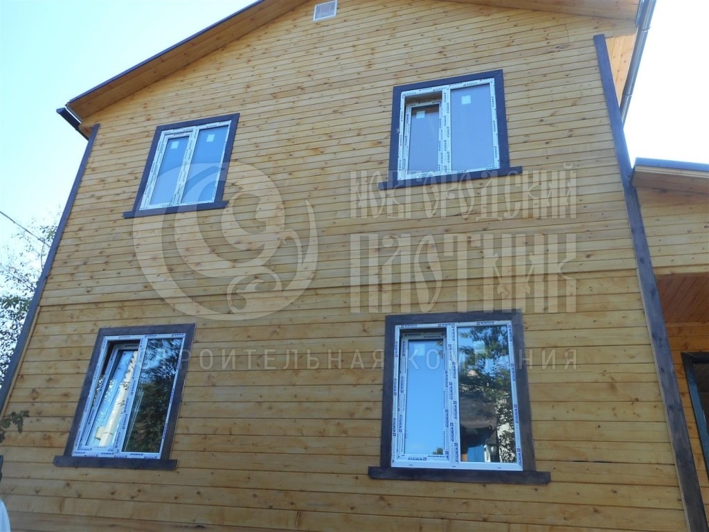 Строительство дома завершилось в сентябре 2018г. Стены 1-го этажа выполнены из профилированного бруса 90х140мм (профиль прямой), второй этаж каркасный, снаружи и внутри каркас обшит сухой вагонкой (толщина вагонки 16мм). Окна ПВХ двухкамерные. Кровля металлочерепица Монтерей.