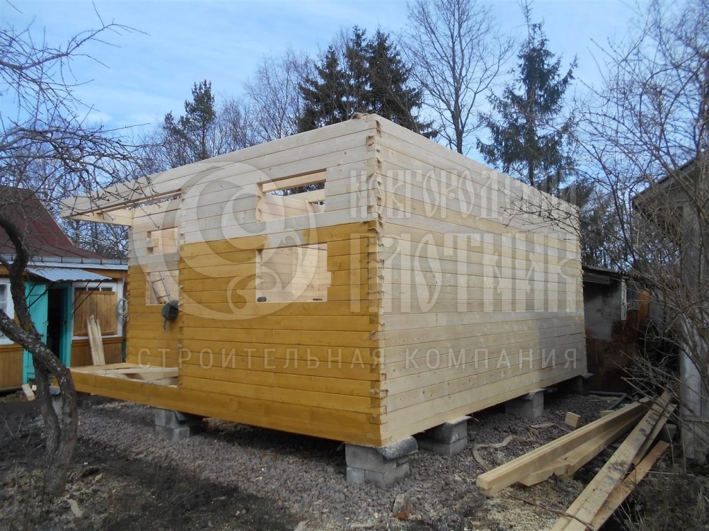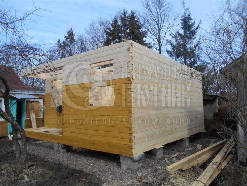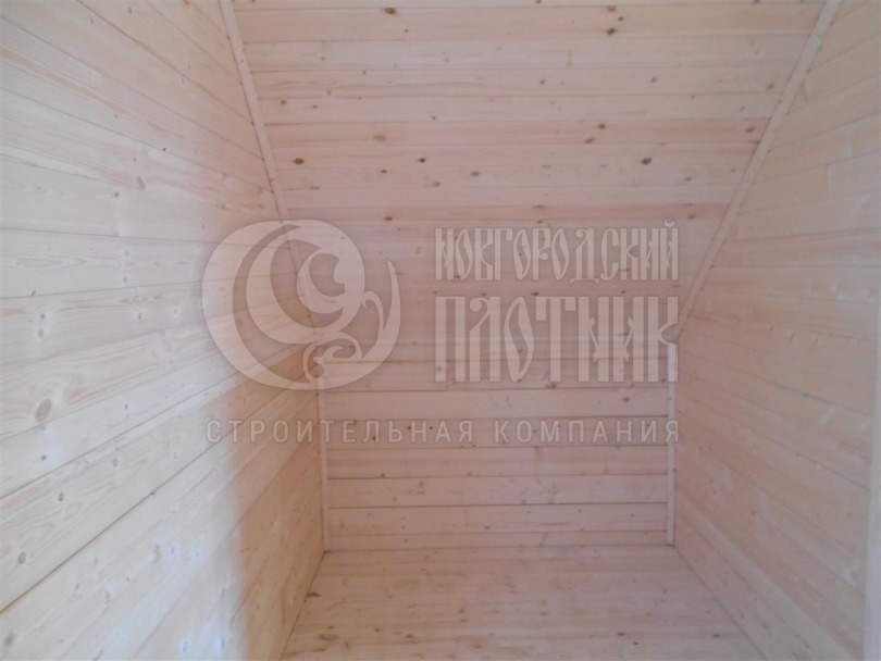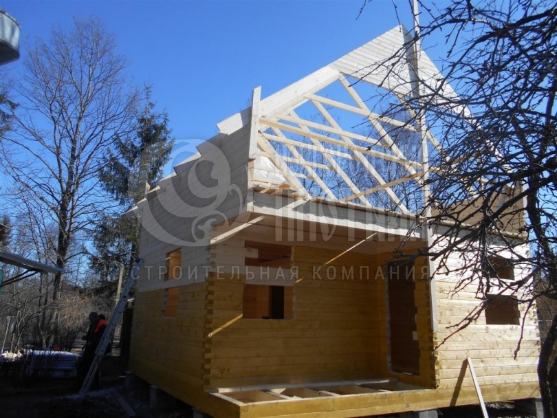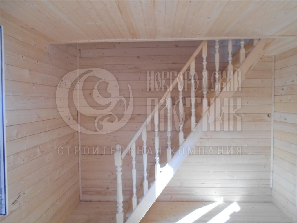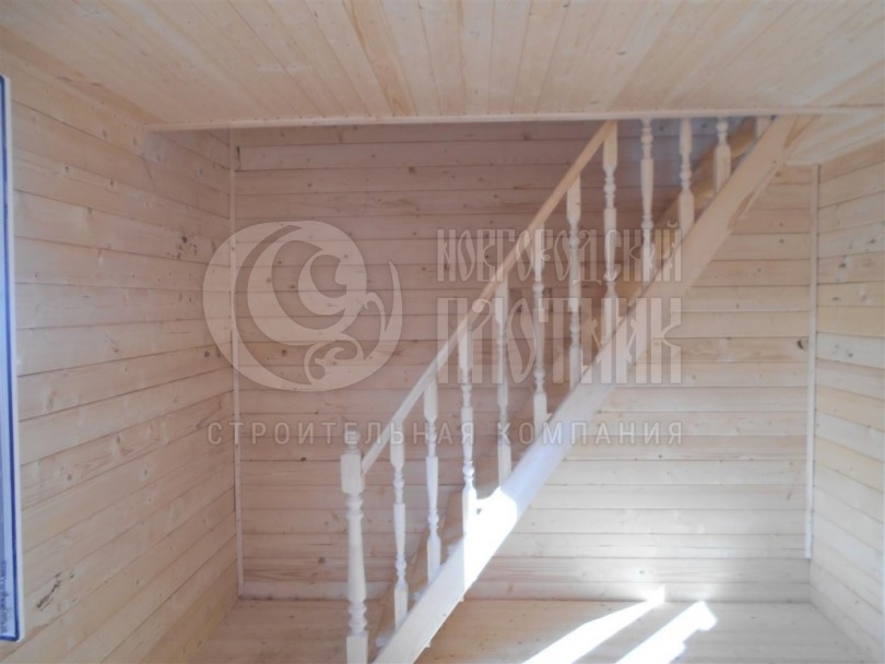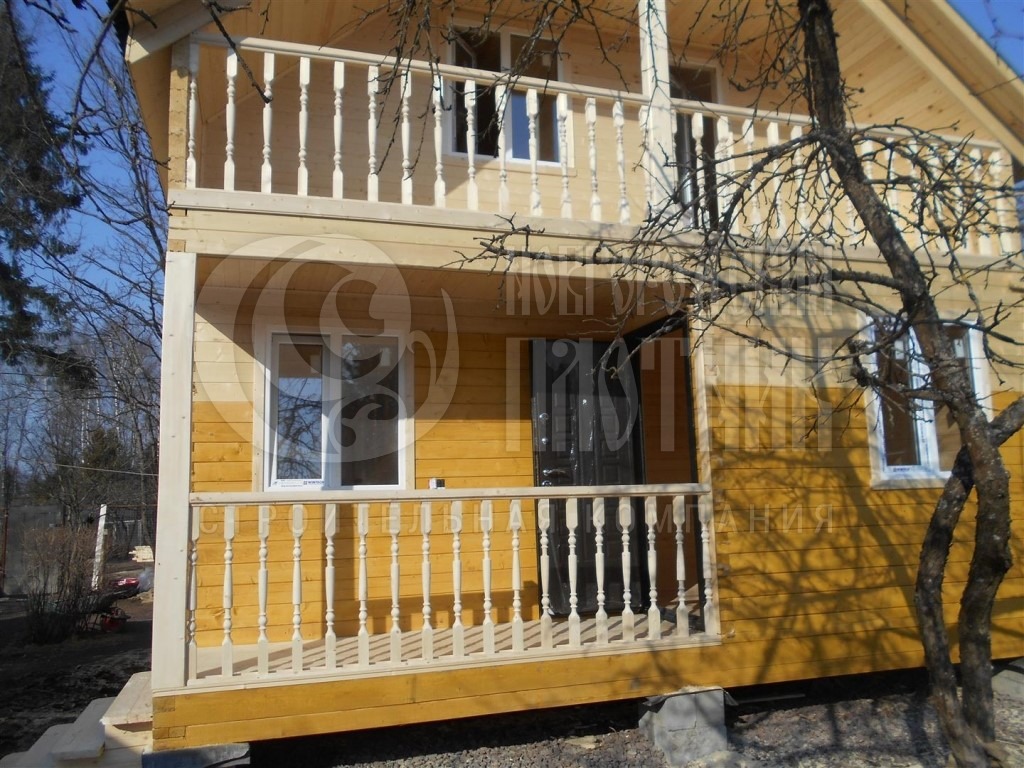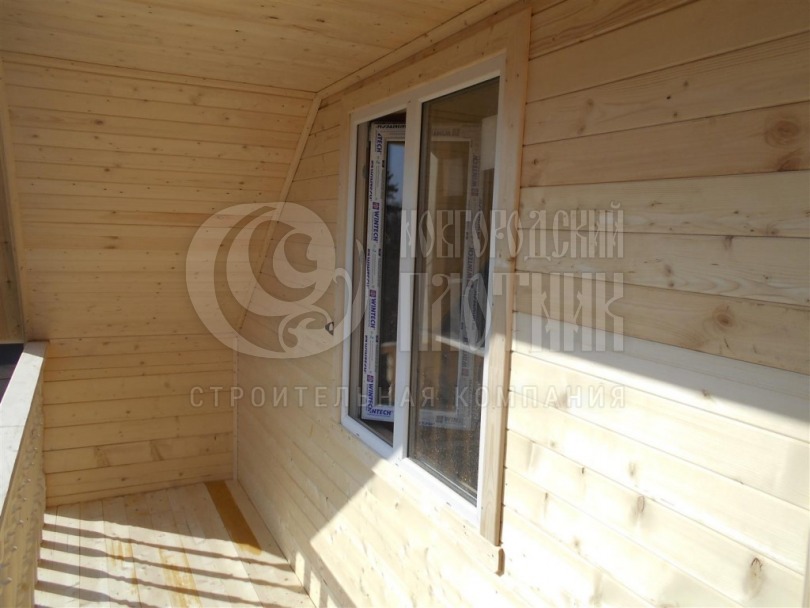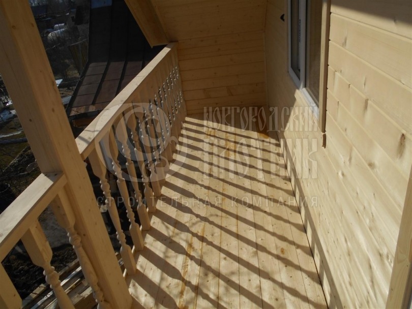 Брусовой полутораэтажный дом 6х6м с балконом и террасой (проект Д-12)