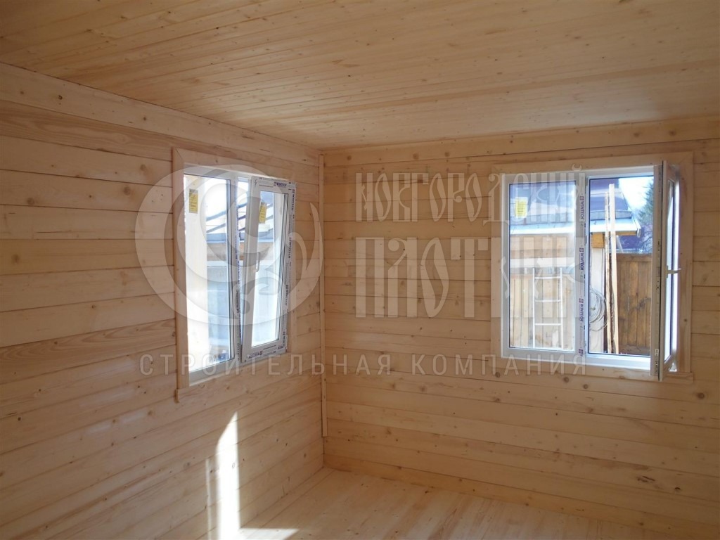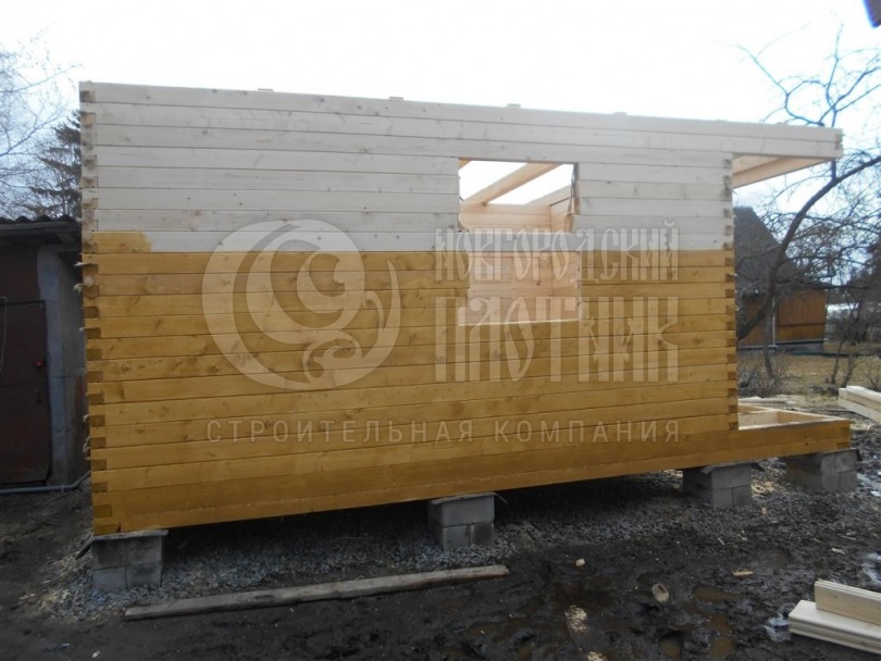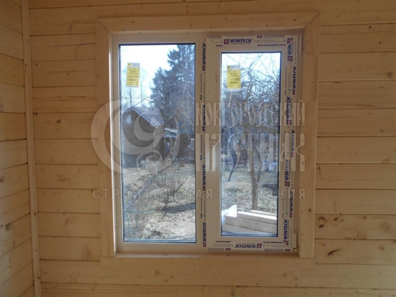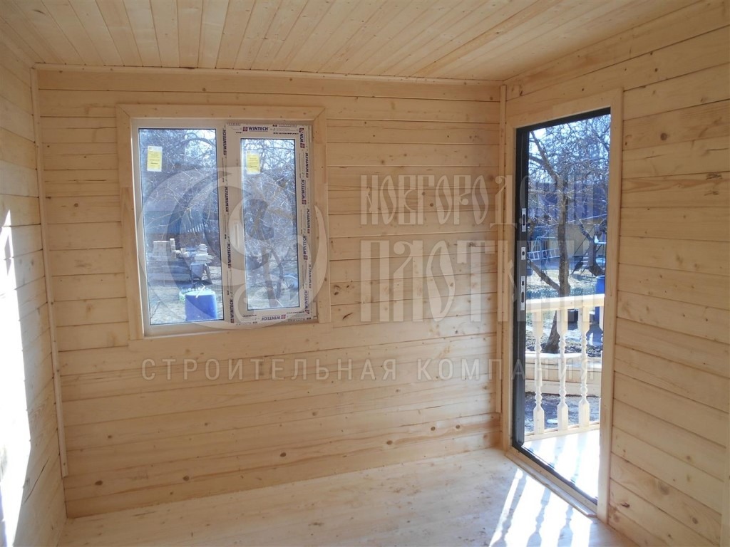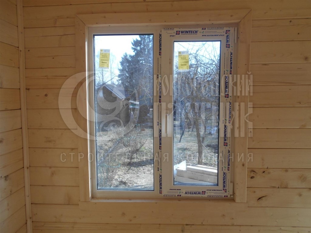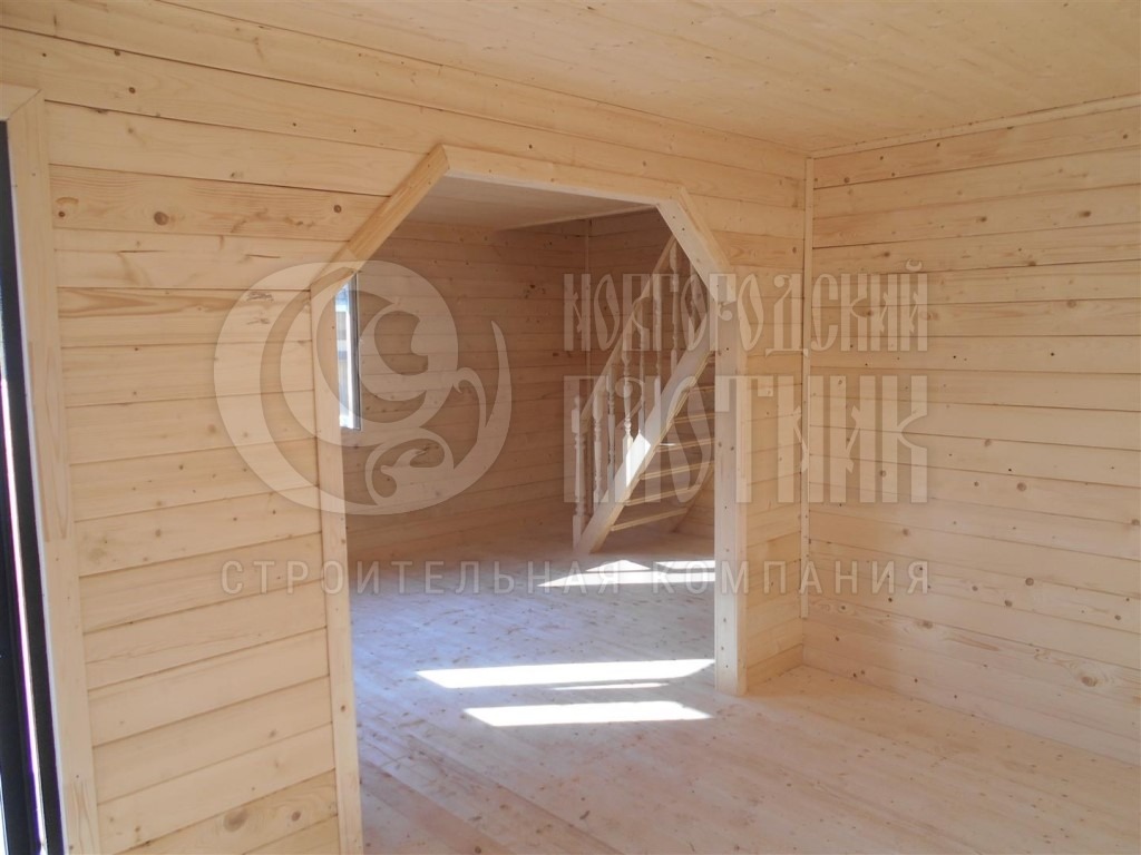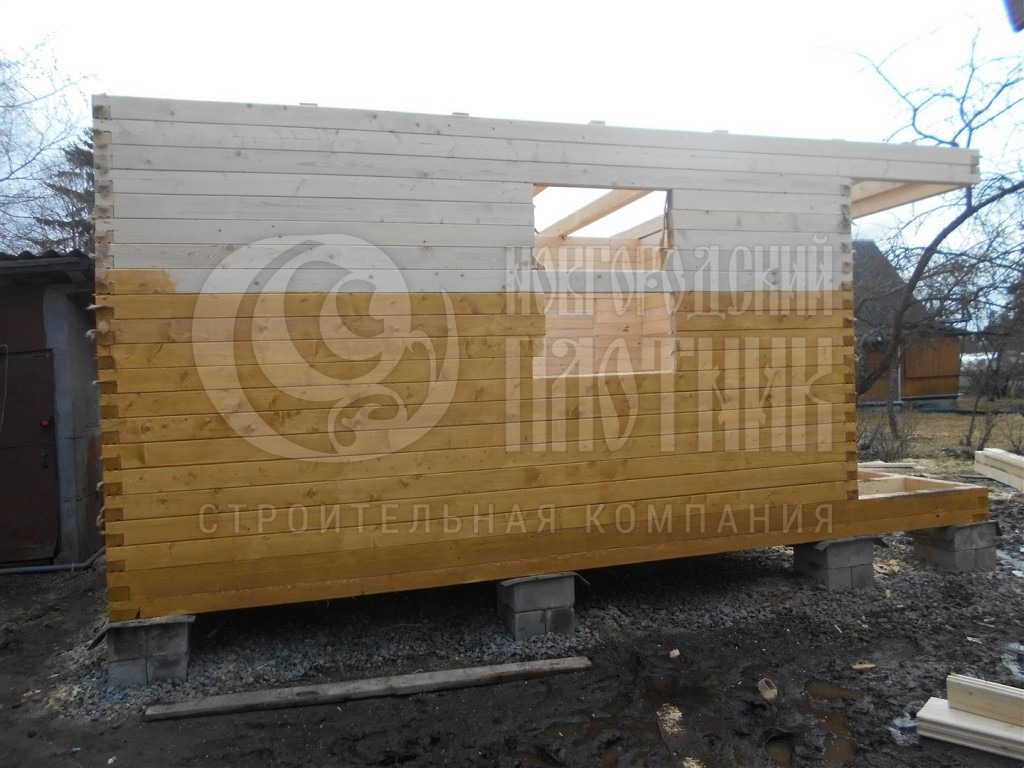 Брусовой полутораэтажный дом 6х6м с балконом и террасой (проект Д-12)