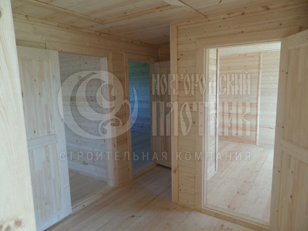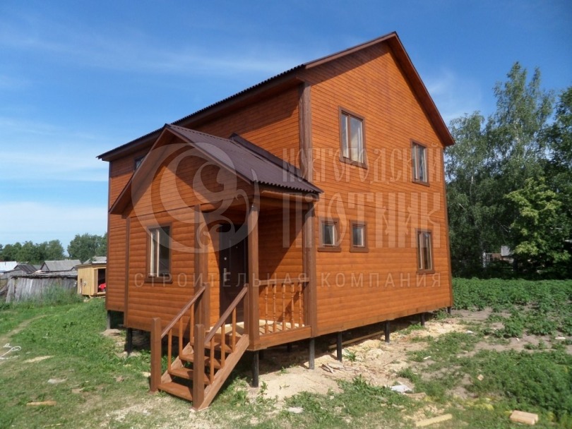 Двухэтажный деревянный дом: 1-й этаж из строганного профилированного бруса 140х140мм, второй каркасный, с утеплением стен и потолков минватой Изовер толщиной 100мм.