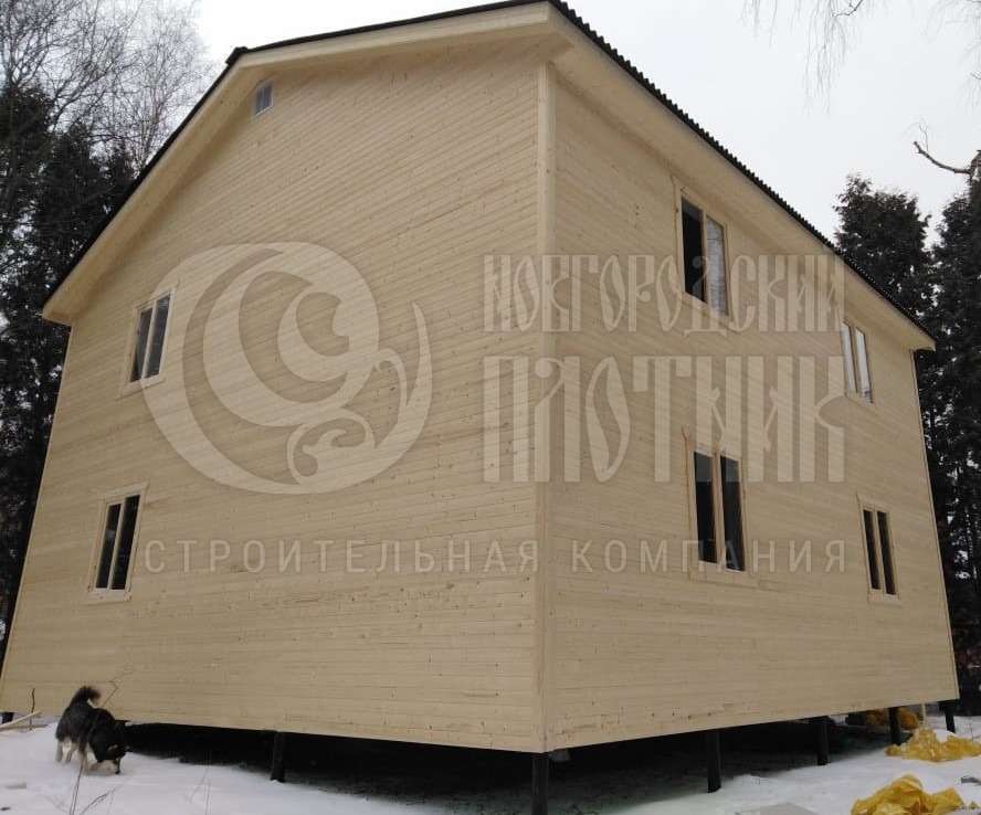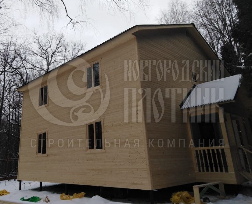 В январе 2020г. был построен каркасный двухэтажный дом 9х9м без внутренней отделки. Каркас стен толщиной 150мм снаружи обшит вагонкой камерной сушки. Толщина вагонки 16мм. Кровля ондулин. Полы и потолки утеплены каменной ватой роквул толщиной 150мм. Стены без утепления и отделки.