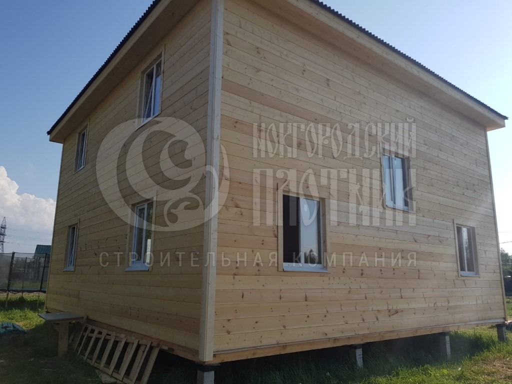 В мае 2019г. завершилось строительство двухэтажного дома по проекту Д-96. Каркас стен снаружи обшит имитацией бруса, внутри вагонкой. Утепление стен, полов и потолков - каменная вата Роквул толщиной 150мм. Покрытие крыши - ондулин. Окна ПВХ двухкамерные.