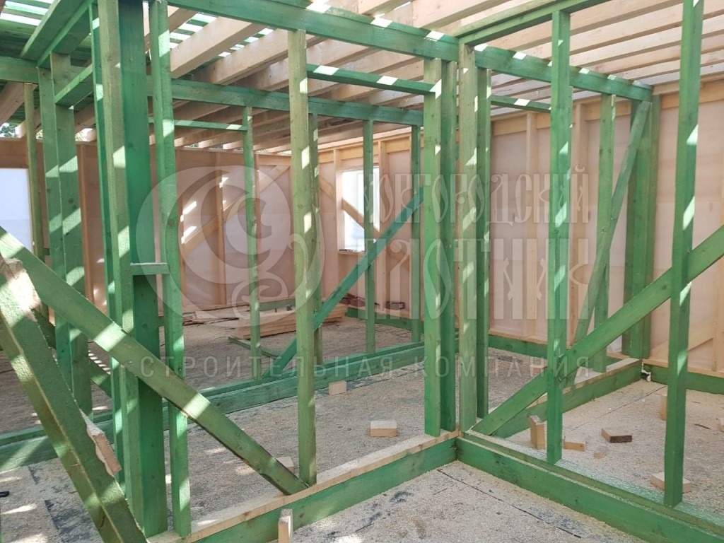 Строительство дома завершилось в сентябре 2018г. Каркас стен снаружи и внутри обшит сухой вагонкой. Утепление стен, полов и потолков - каменная вата Роквул толщиной 150мм. Кровля ондулин. Окна ПВХ двухкамерные.