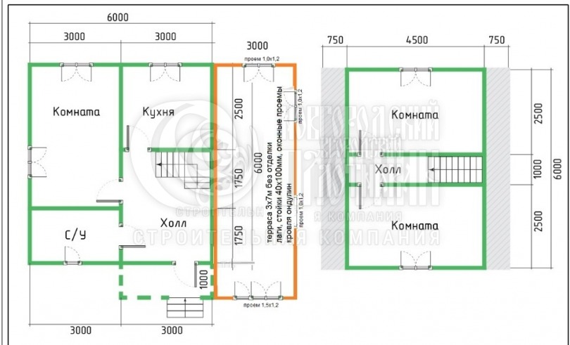 Каркасный дом 6х6м с угловой террасой (проект Д-7)