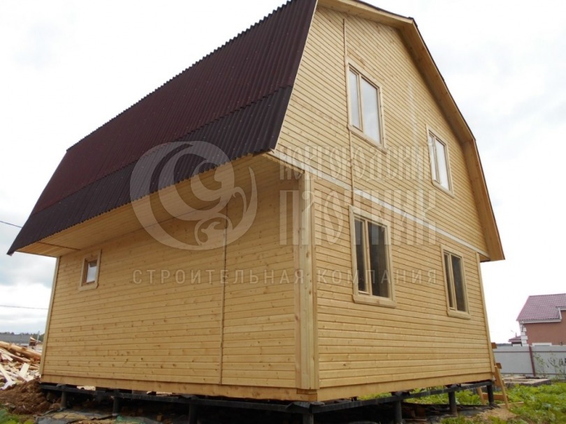 Каркасный дом размером 6х7м с мансардой. Стены с наружной и внутренней стороны обшиты сухой вагонкой, между вагонкой проложен утеплитель Роквул толщиной 150мм.