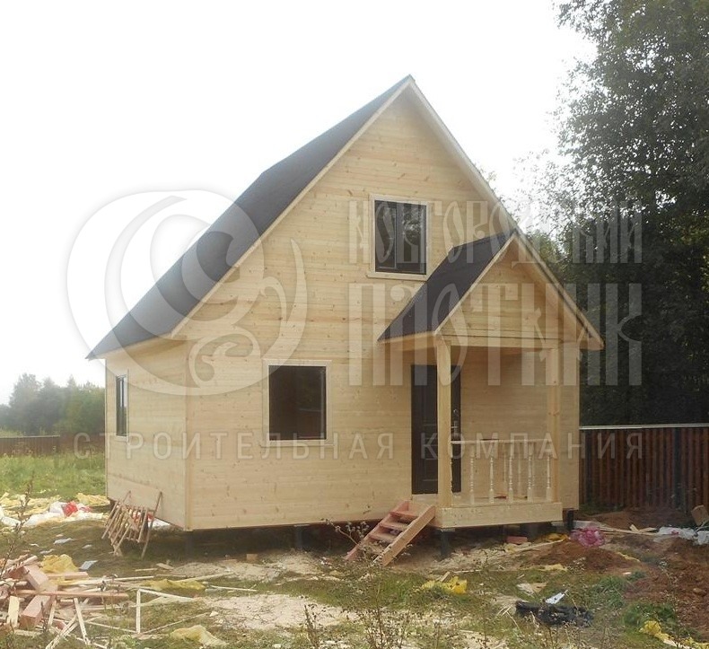 Небольшой каркасный дом построен в д.Езвино по индивидуальному проекту Заказчика. Основание дома (обвязка, половые лаги и черновой пол) обработаны антисептиком еще на производстве.