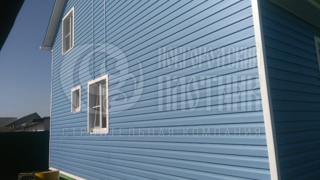 Строительство дома завершилось в августе 2018г. Каркас стен снаружи обшит ОСБ и сайдингом Docke (цвет голубика), внутри вагонкой. Утепление стен, полов и потолков - каменная вата Роквул толщиной 150мм. Окна ПВХ двухкамерные. Кровля металлочерепица (цвет серый).