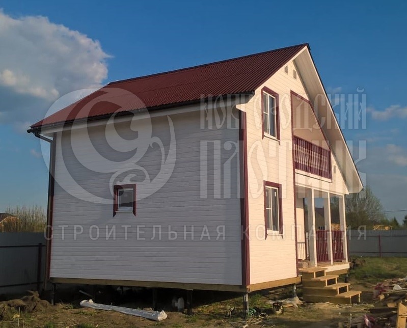 В мае 2019г. завершилось строительство дома по проекту Д-22. Каркас стен снаружи и внутри обшит вагонкой камерной сушки (толщина вагонки 16мм). Утепление стен, полов и потолков - каменная вата Роквул толщиной 150мм. окна ПВХ двухкамерные. Покрытие крыши ондулин.