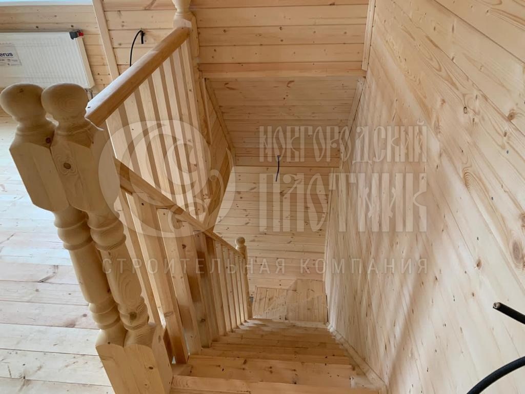 В мае 2021г. завершилось строительство каркасного дома по проекту Д-22 с перепланировкой. Каркас стен толщиной 150мм снаружи обшит ОСБ 12мм (сайдинг предоставлен Заказчиком, работы по нему выполнены по договоренности с бригадой напрямую), внутри имитацией бруса (1-1 этаж) и вагонкой (2-й этаж). Утепление стен, потолков - каменная вата Роквул 150мм, полы 1-го этажа утеплены в 200мм. Кровля металлочерепица.