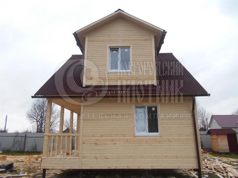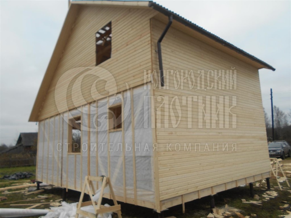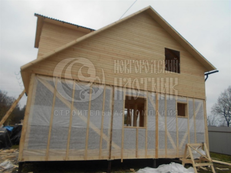 Строительство дома завершилось в ноябре 2017г. по проекту Д-22 с небольшими изменениями: убрали балкон. Каркас стен снаружи и внутри обшит вагонкой камерной сушки (толщина вагонки 16мм), утепление стен - каменная вата Роквул толщиной 150мм. Кровля ондулин.