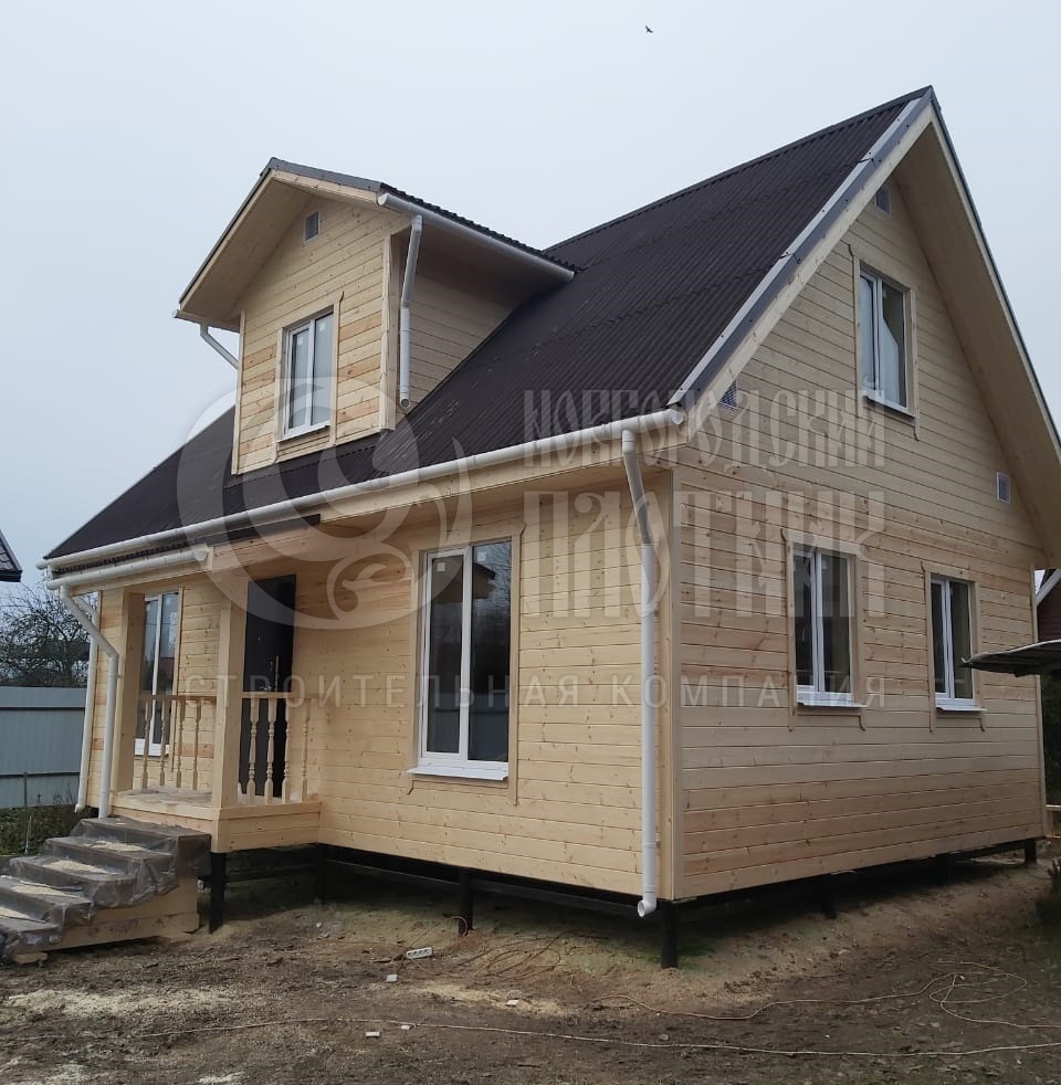 В ноябре 2022г завершилось строительство каркасного дома с мансардой по проекту Д-79. Каркас толщиной 150мм снаружи обшит имитацией бруса, внутри гостиная обшита имитацией бруса, остальные комнаты вагонкой. Утепление стен, полов и потолков - каменная вата Роквул толщиной 150мм. Кровля ондулин.