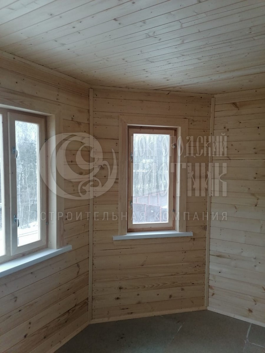 В декабре 2020г. завершилось строительство каркасного дома по проекту Д-95. Каркас толщиной 100мм снаружи и внутри обшит имитацией бруса, потолки вагонкой. Утепление стен, полов и потолков - Роквул 100мм. Кровля ондулин. окна базовые - деревянные с двойным остеклением.