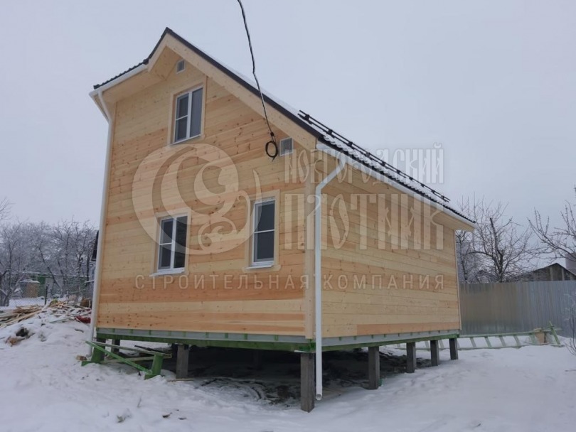 В декабре 2021г. завершилось строительство каркасного дома 7х7м по проекту Д-95. Каркас стен толщиной 200мм снаружи обшит имитацией бруса, внутри стены и потолки обшиты вагонкой камерной сушки (толщина вагонки 16мм). Утепление стен, полов и потолков - каменная вата Роквул толщиной 200мм. Окна ПВХ двухкамерные. Кровля металлочерепица.