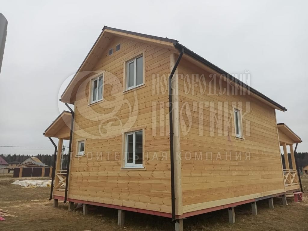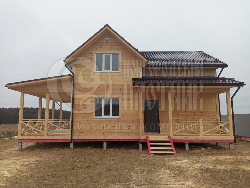 В ноябре 2021г. завершилось строительство каркасного полутораэтажного дома по проекту Д-88. В проект добавлена открытая терраса 3м. Каркас стен толщиной 150мм снаружи обшит имитацией бруса, внутри вагонкой. Утепление стен, полов и потолков - каменная вата Роквул толщиной 150мм. Окна ПВХ двухкамерные. Кровля металлочерепица.