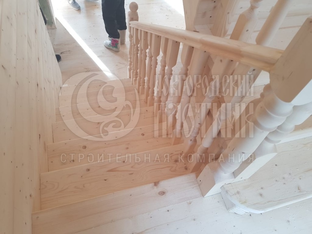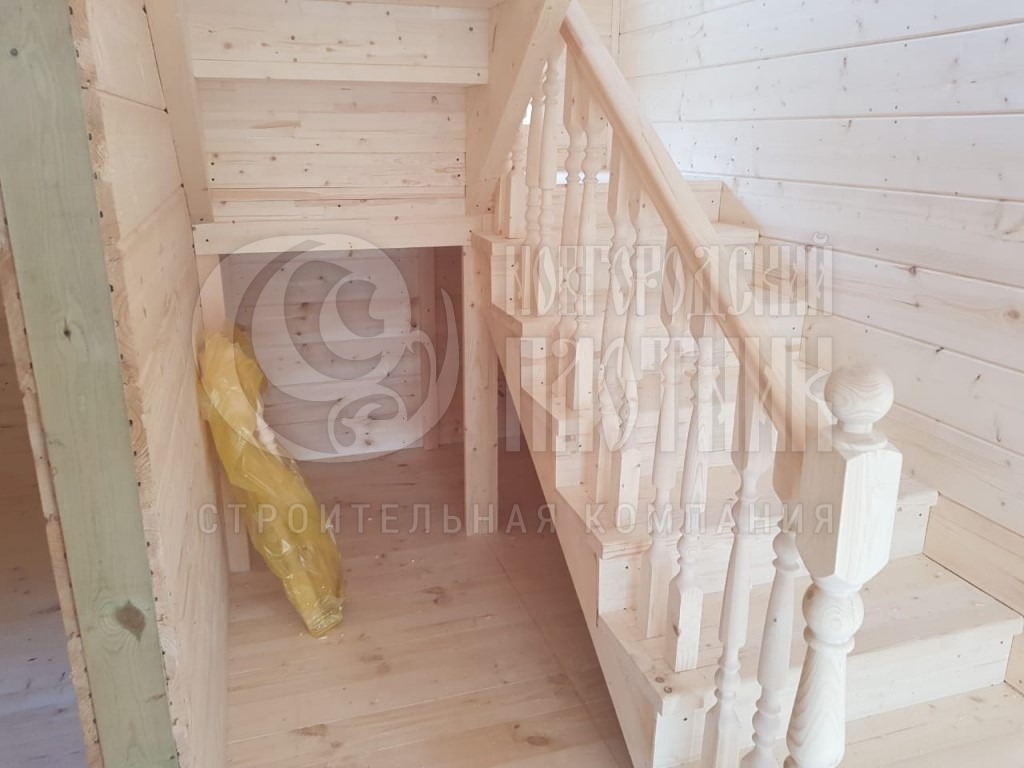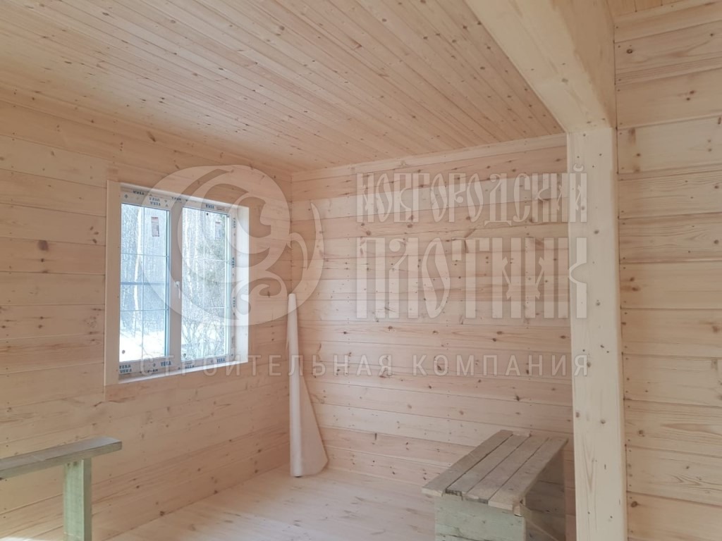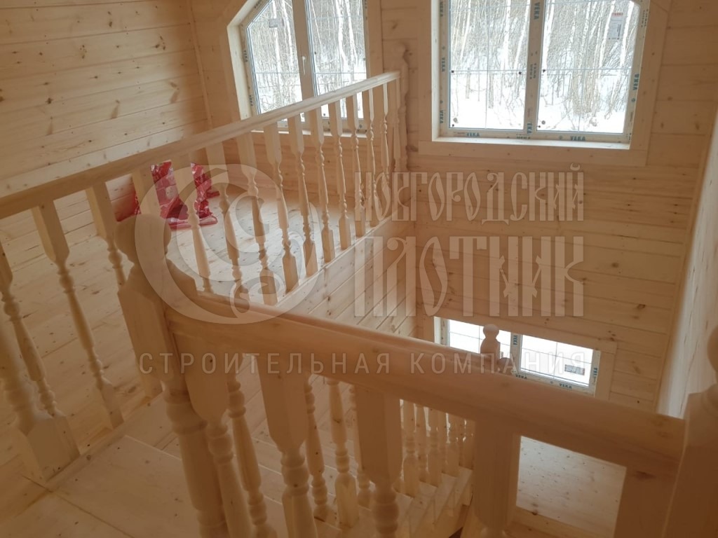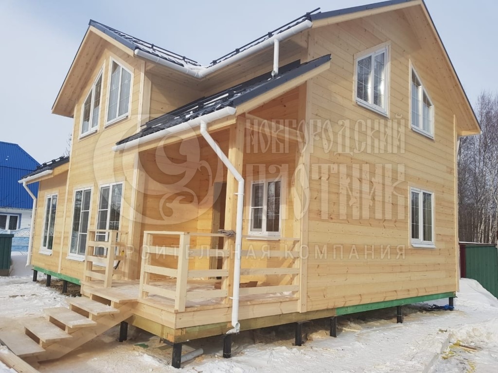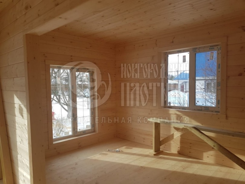 Строительство дома завершилось в феврале 2019г. Каркас стен снаружи и внутри обшит имитацией бруса, потолки подшиты вагонкой. Утепление стен - каменная вата Роквул толщиной 150мм, полов и потолков - Роквул 200мм. Покрытие крыши металлочерепица Монтеррей (цвет серый). Окна предоставлены Заказчиком.