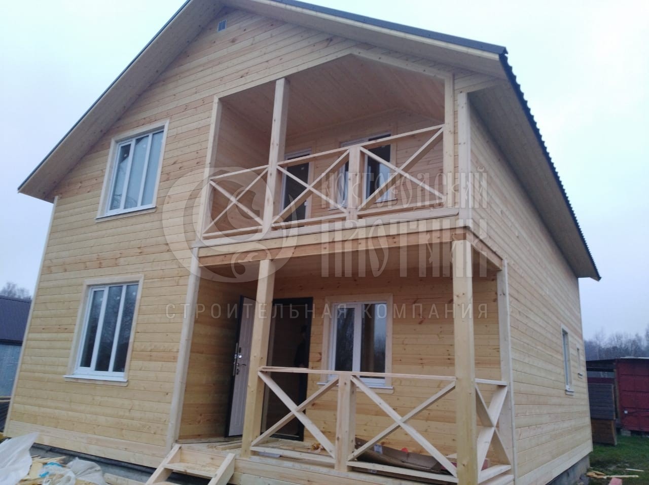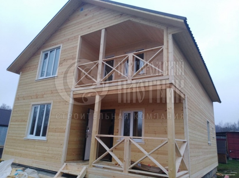 В ноябре 2020г. завершилось строительство каркасного дома на основе проекта Д-72. Размер дома был увеличен на 1м (был 8х9м), изменили планировку. Каркас стен толщиной 150мм снаружи и внутри обшит имитацией бруса, потолки вагонкой. Утепление стен, полов и потолков - каменная вата Роквул толщиной 150мм. Окна ПВХ выполнены под заказ. Кровля металлочерепица.