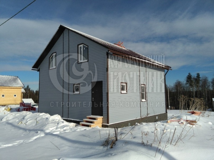 Строительство дома завершилось в марте 2018г. Каркас стен снаружи обшит OSB, внутри вагонкой. Утепление стен - каменная вата Роквул толщиной 150мм. Кровля металлочерепица, цвет серый. Поверх ОСБ дом обшит сайдингом (предоставлен Заказчиком). На одном участке с домом построена каркасная одноэтажная баня 5,5х4м. Стены снаружи обшиты имитацией бруса, внутри вагонкой. Утепление стен - каменная вата Роквул толщиной 100мм.