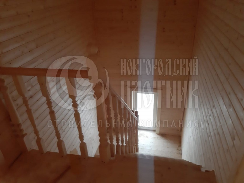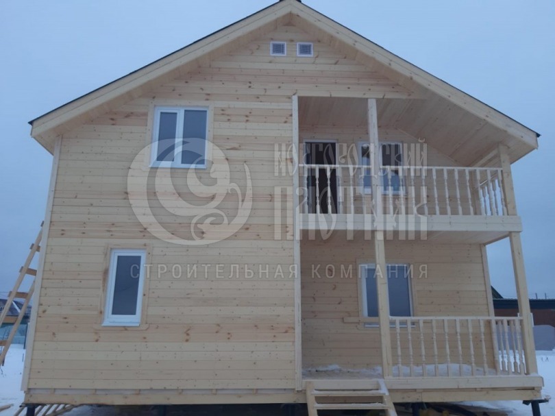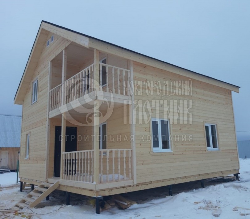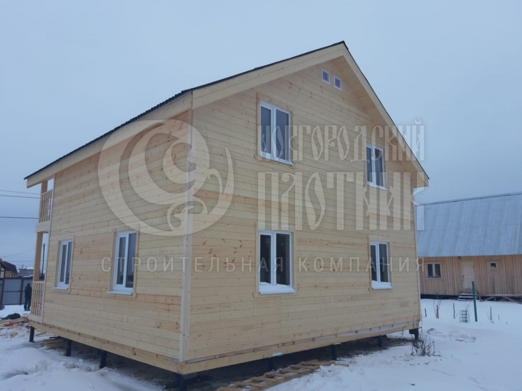 В феврале 2020г. завершилось строительство каркасного дома по проекту Д-34. Дом построен в базовой комплектации "каркас 150мм". Каркас стен снаружи обшит имитацией бруса, внутри вагонкой. Утепление стен, полов и потолков - каменная вата Роквул толщиной 150мм. Окна ПВХ двухкамерные. Кровля ондулин. Лестница выполнена из клееного сухого материала.