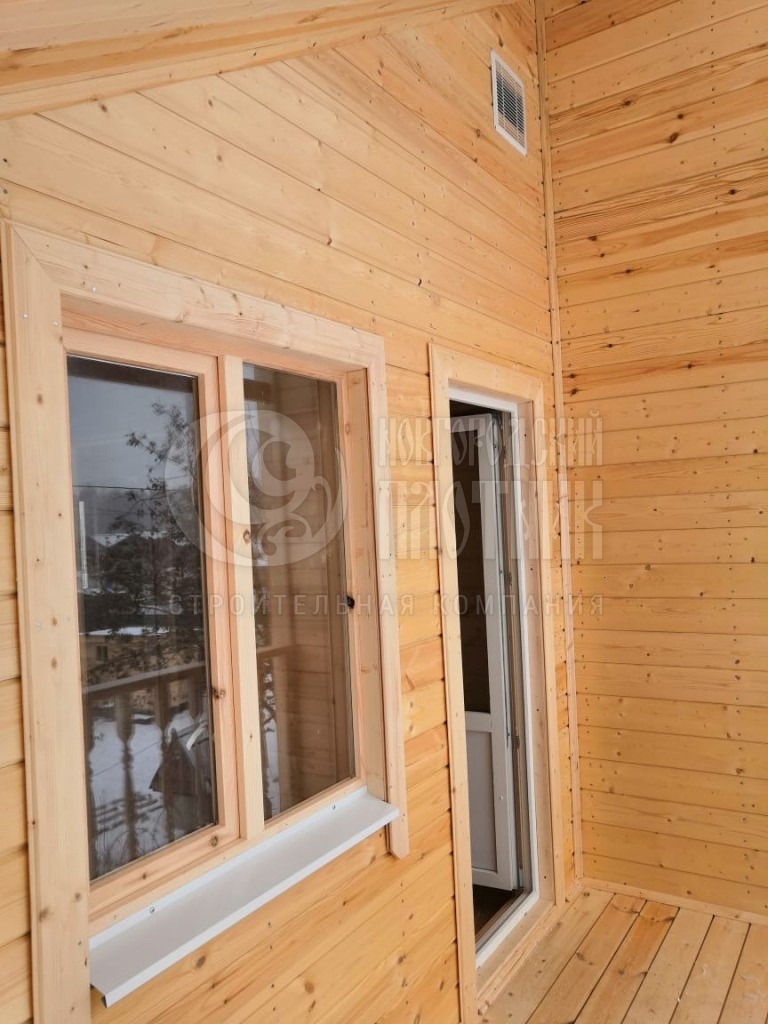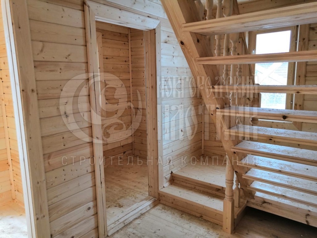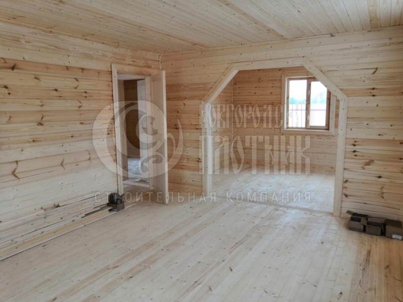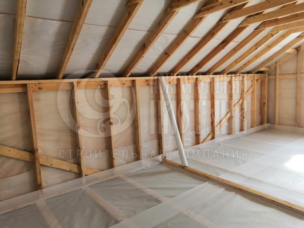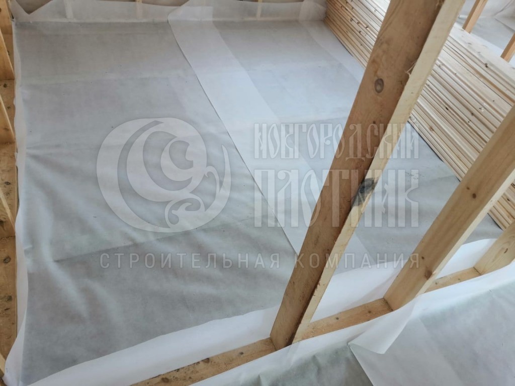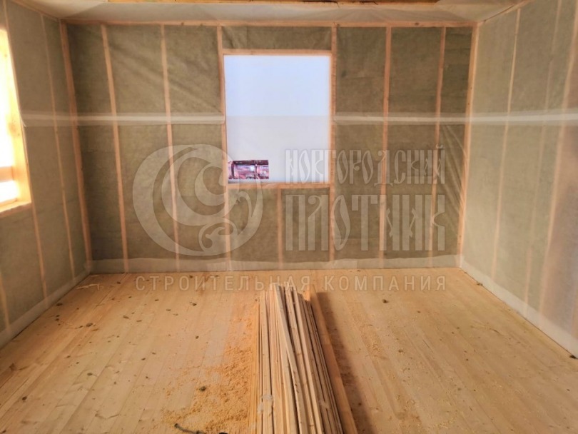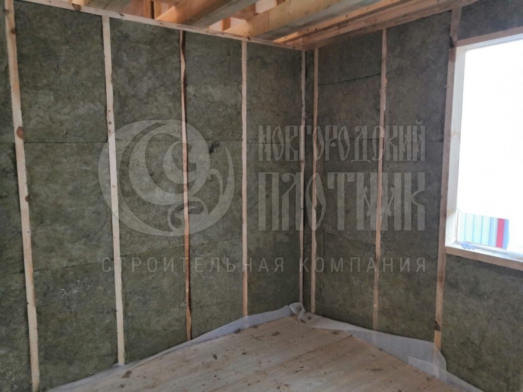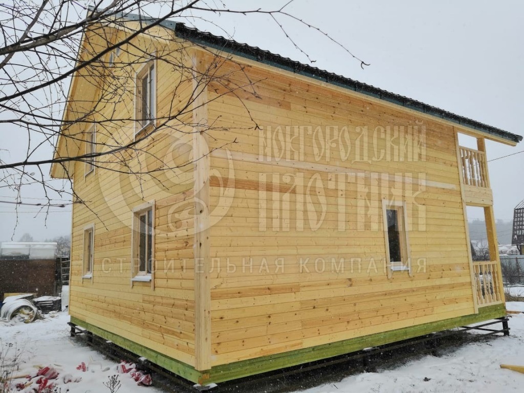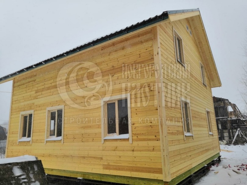В марте 2020г. завершилось строительство каркасного полутораэтажного дома по проекту Д-34. Каркас стен толщиной 100мм снаружи и внутри обшит имитацией бруса, потолки - вагонкой. Утепление стен, полов и потолков - каменная вата Роквул толщиной 100мм. Окна деревянные. Кровля металлочерепица.