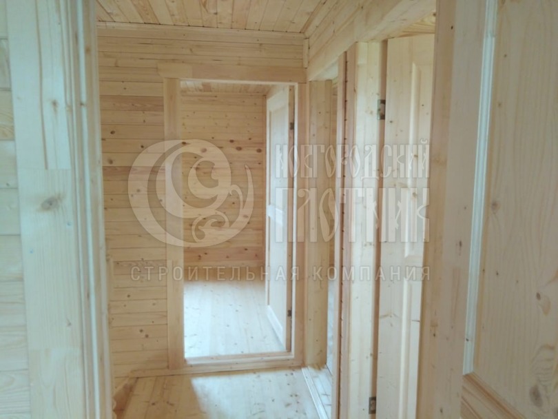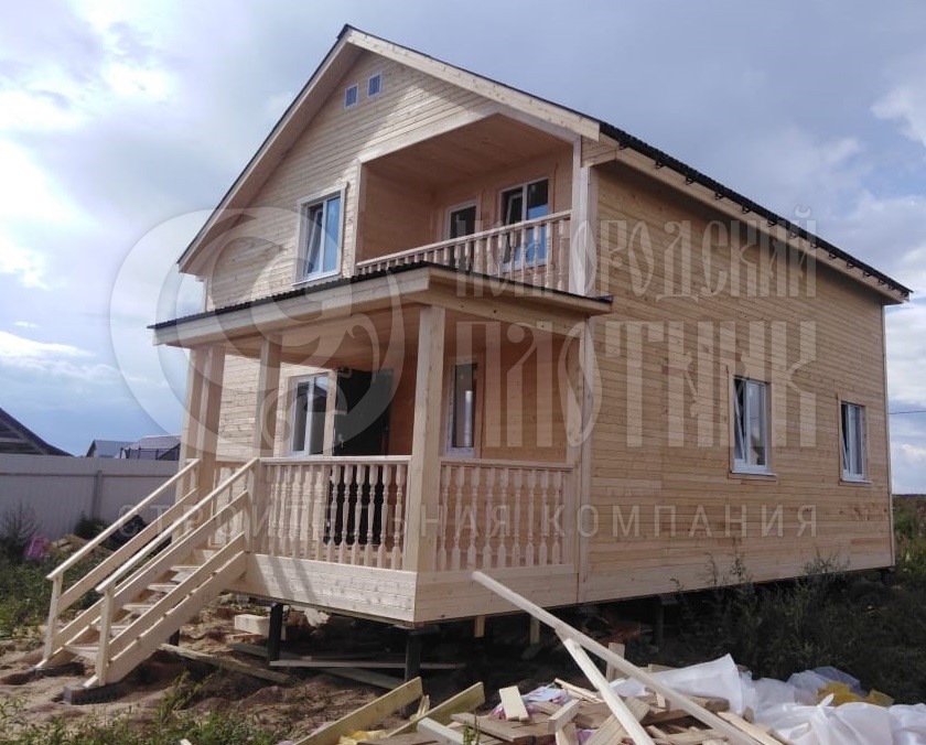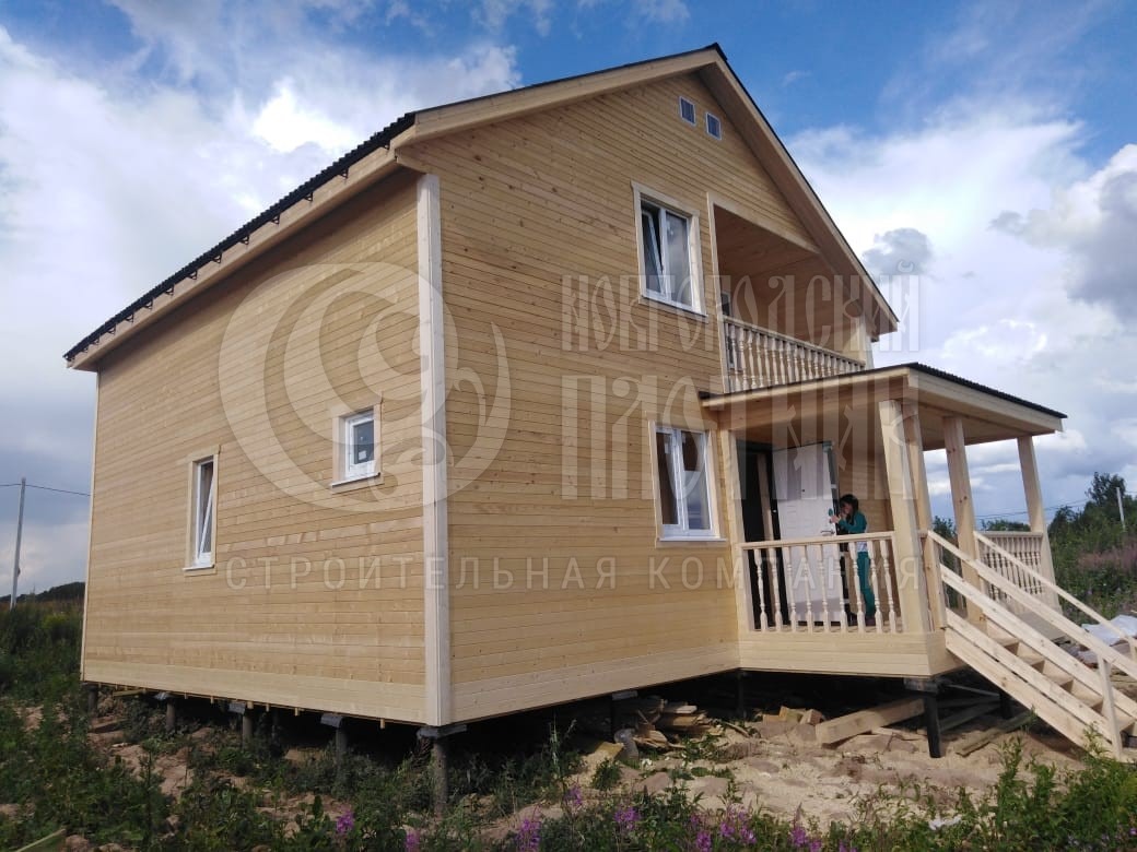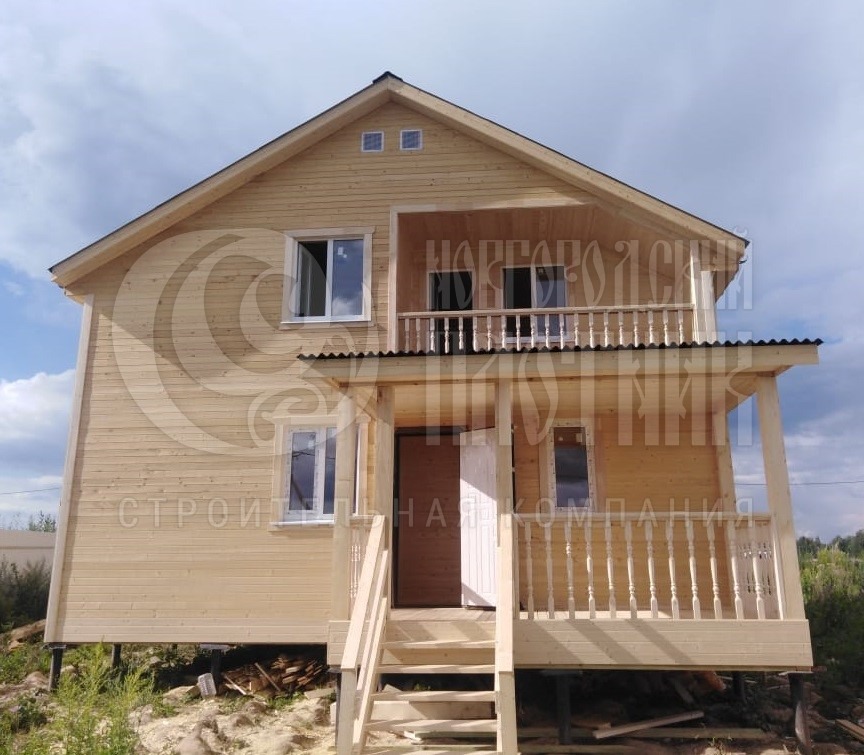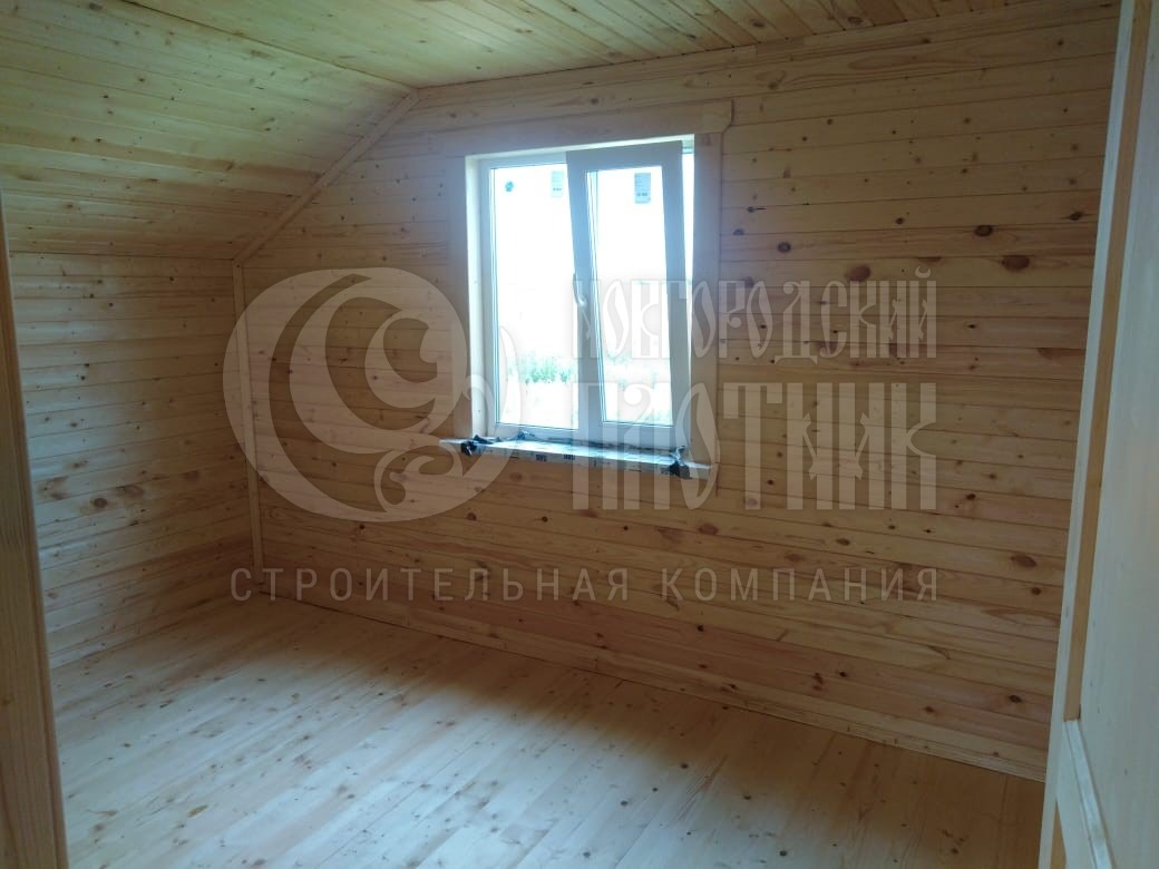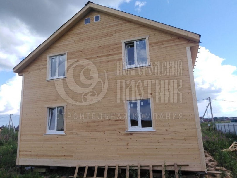 В августе 2020г. завершилось строительство каркасного полутораэтажного дома по проекту Д-34. Каркас стен снаружи и внутри обшит вагонкой камерной сушки (толщина вагонки 16мм). Кровля ондулин. Утепление стен, полов и потолков - каменная вата Роквул толщиной 150мм. окна ПВХ двухкамерные.