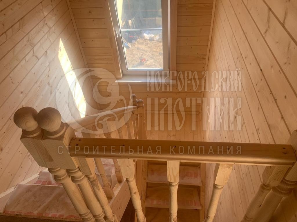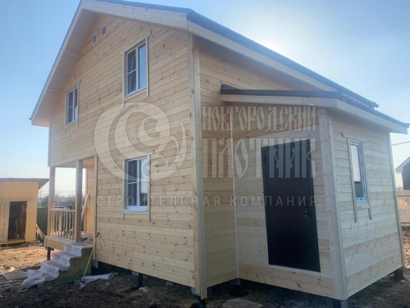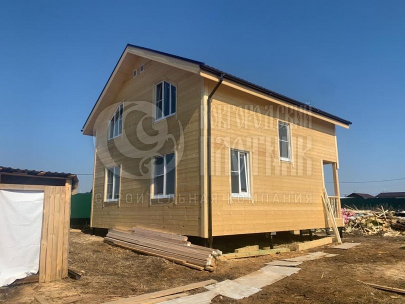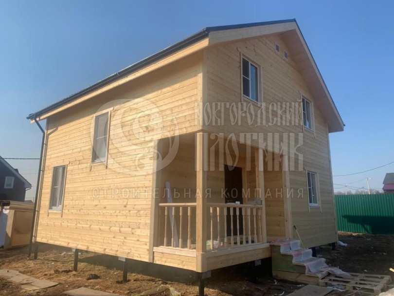 В апреле 2021г. завершилось строительство каркасного дома по проекту Д-34 с перепланировкой. Каркас стен толщиной 150мм снаружи обшит имитацией бруса, внутри вагонкой. Утепление полов и потолков - каменная вата Роквул 200мм, стены утеплены в 150мм. Кровля металлочерепица. Окна ПВХ двухкамерные.