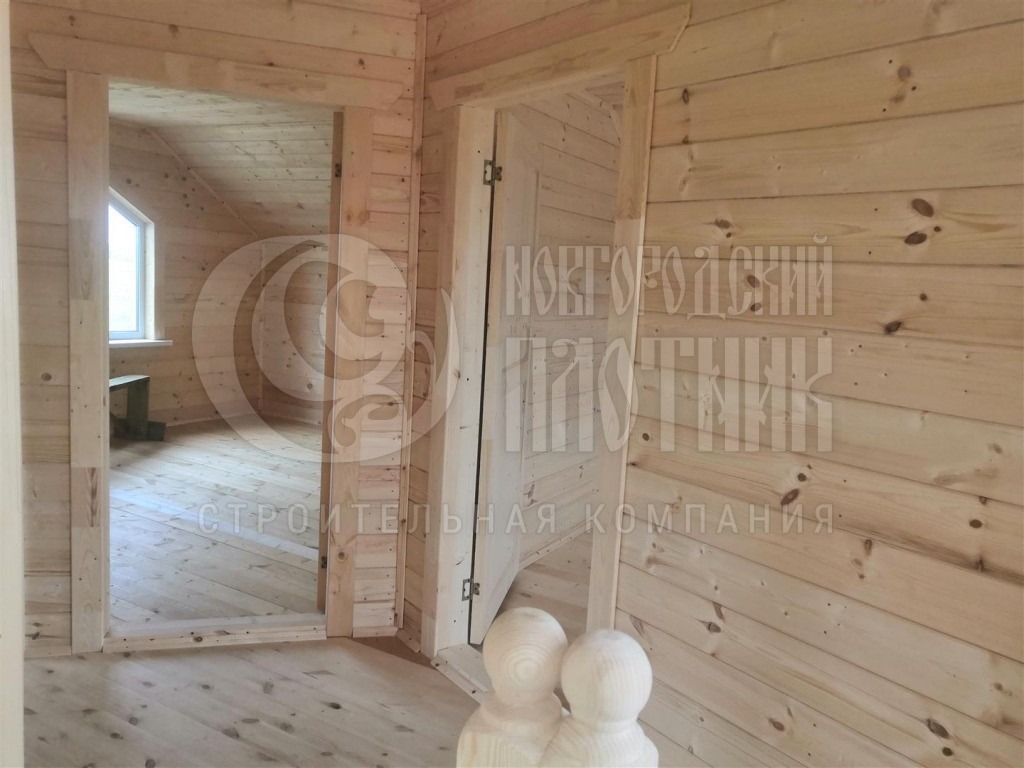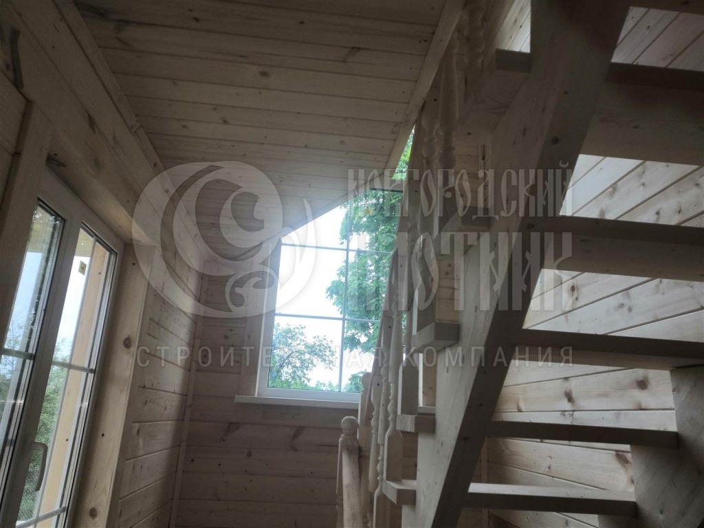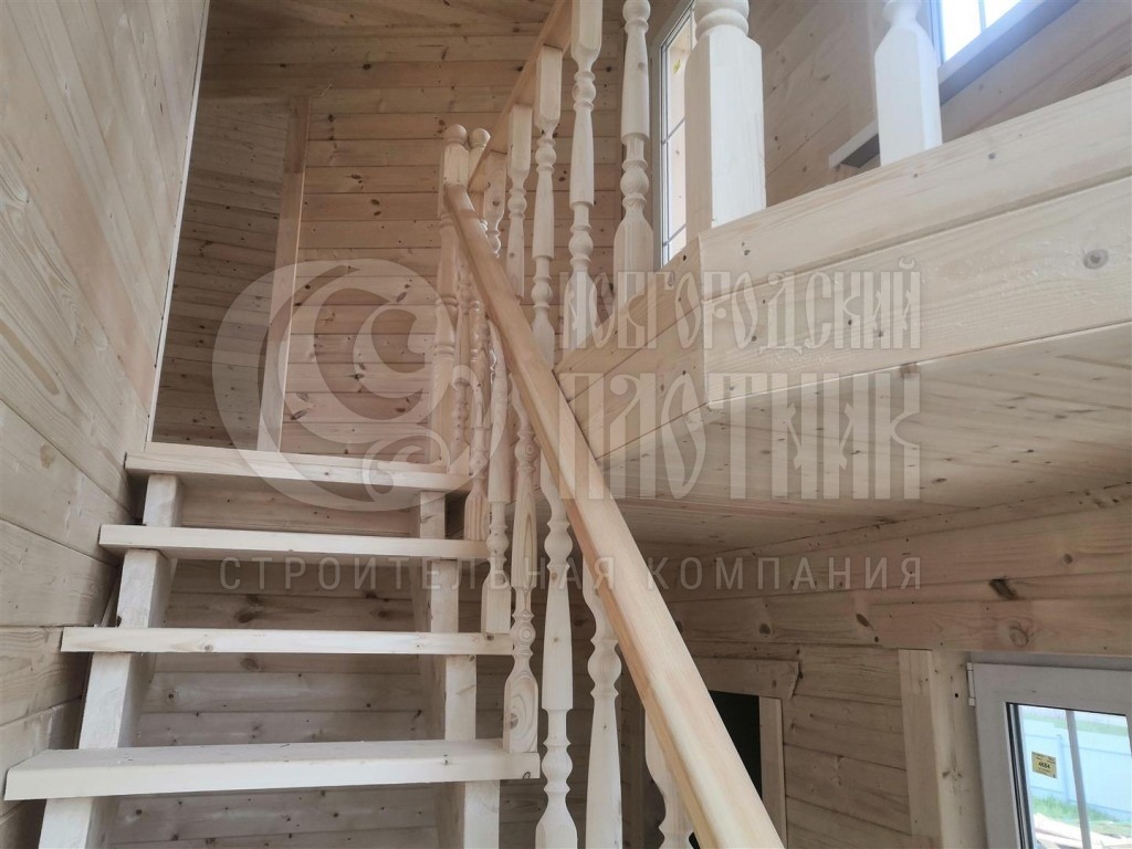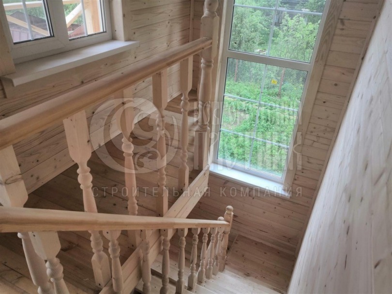 В июне 2020г. завершилось строительство каркасного дома на основе проекта Д-34. Каркас стен снаружи и внутри обшит имитацией бруса. Утепление пола 1-го этажа - Роквул 200мм; стены, межэтажное перекрытие и потолки утеплены Роквулом 150мм. Окна ПВХ выполнены под заказ. Кровля металлочерепица. Кукушка в районе лестница выполнены как у проекта Д-72.