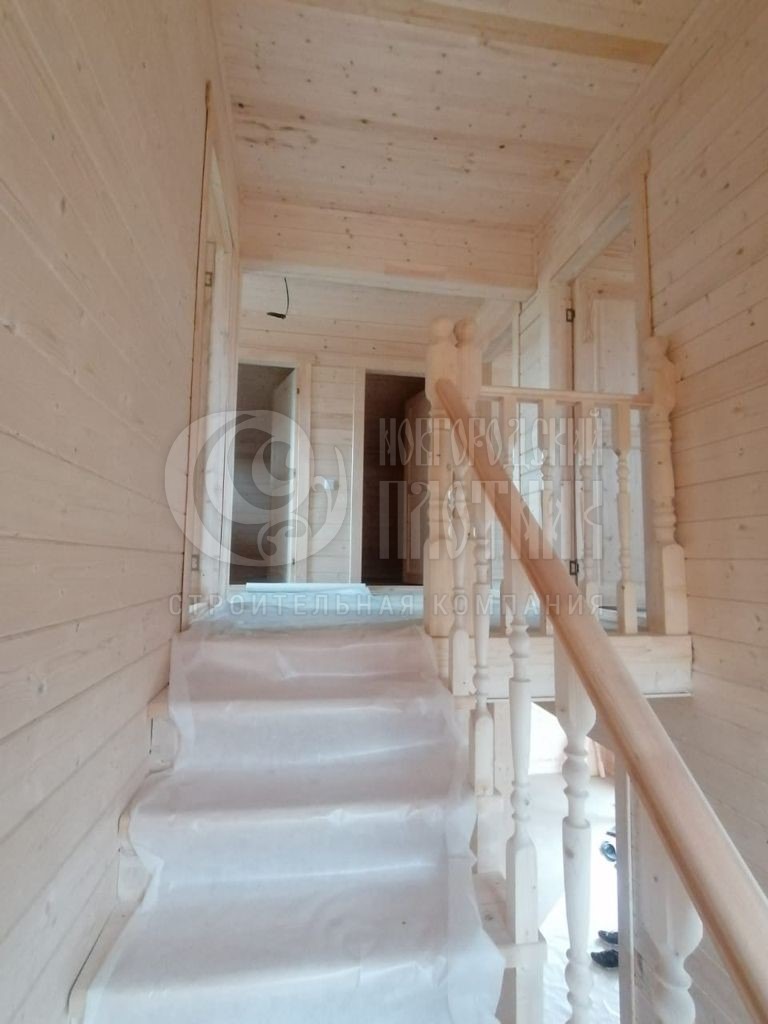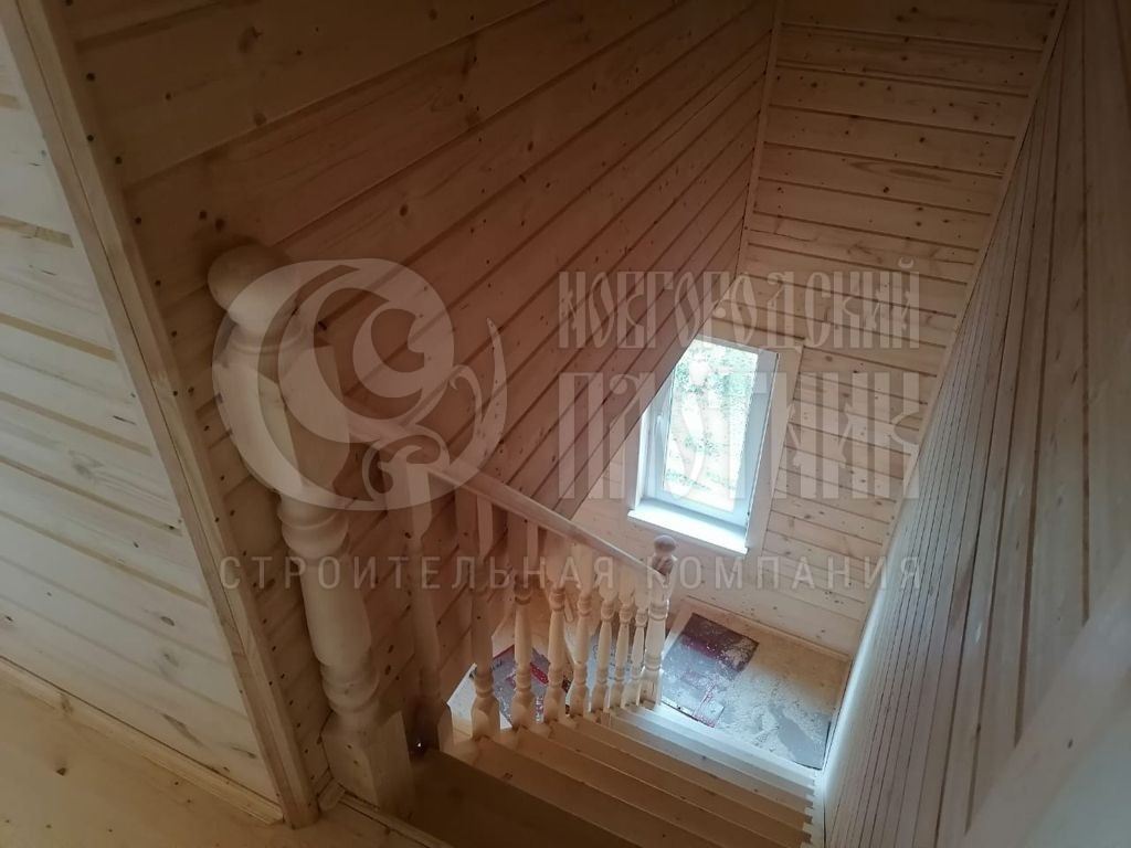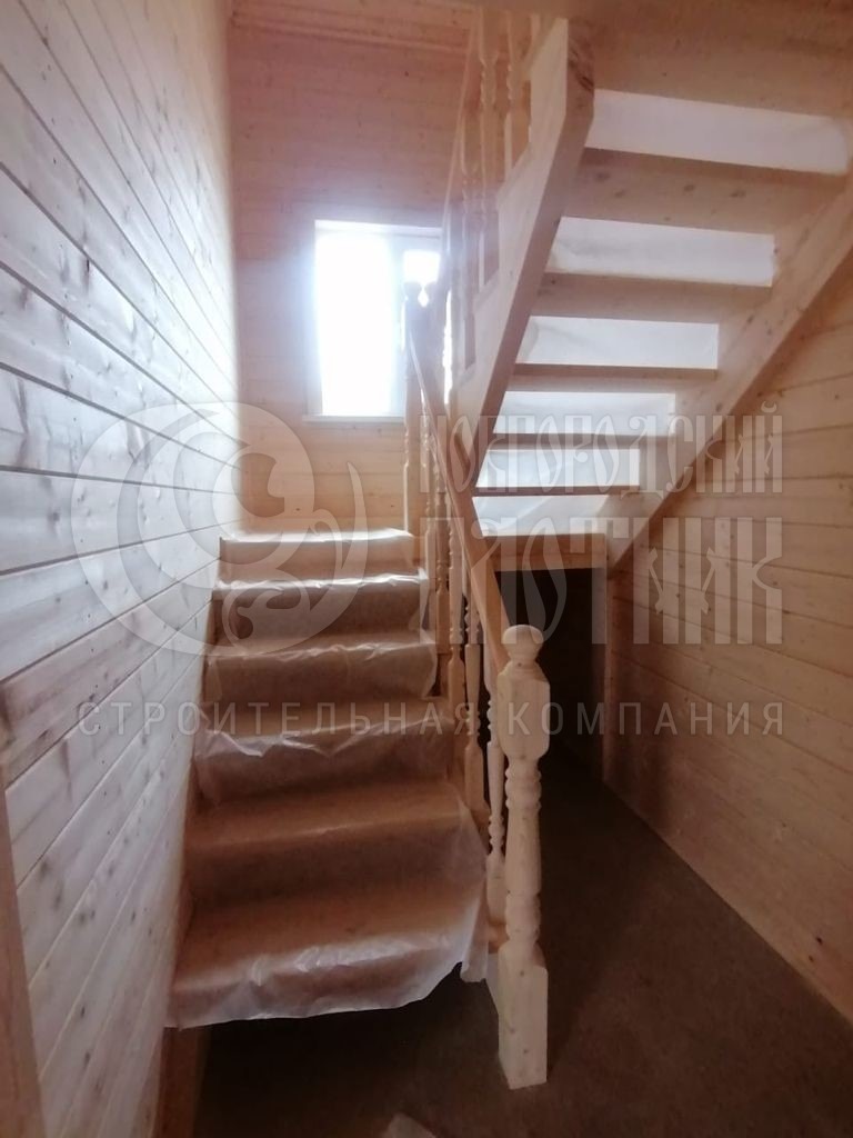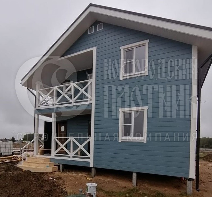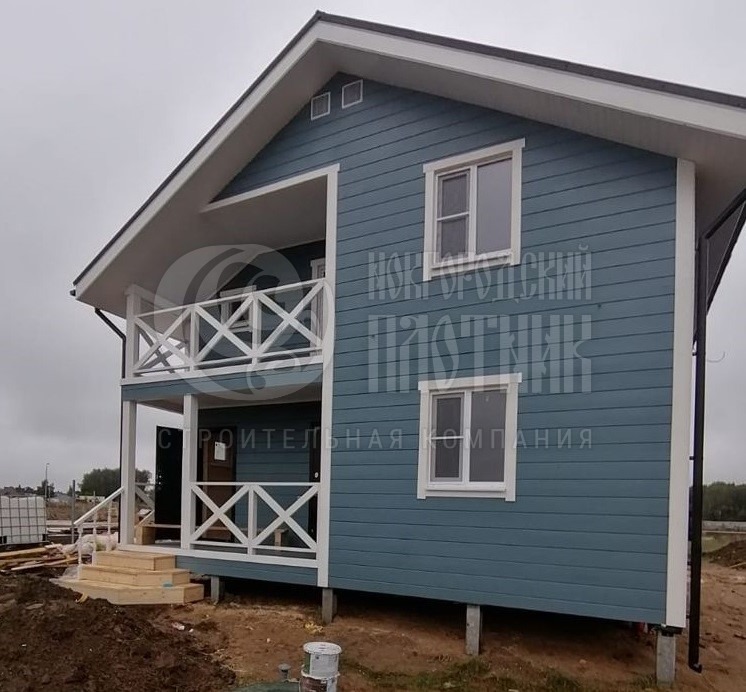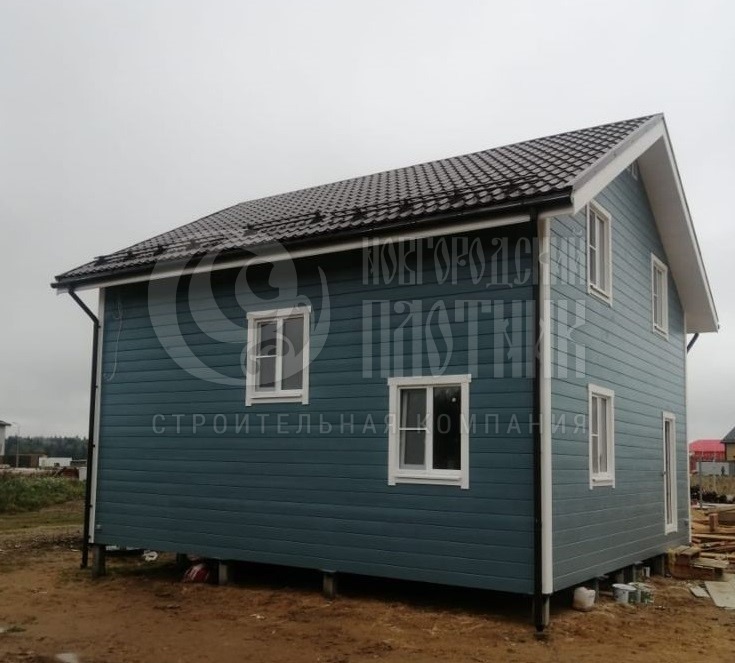 В сентябре 2021г. завершилось строительство каркасного дома по проекту Д-34. Каркас стен толщиной 150мм снаружи обшит имитацией бруса, внутри вагонкой. Утепление стен - каменная вата Роквул толщиной 150мм, полы и потолки утеплены в 200мм. Окна ПВХ двухкамерные. Кровля металлочерепица.