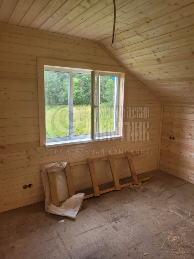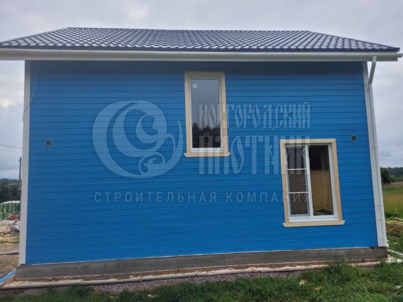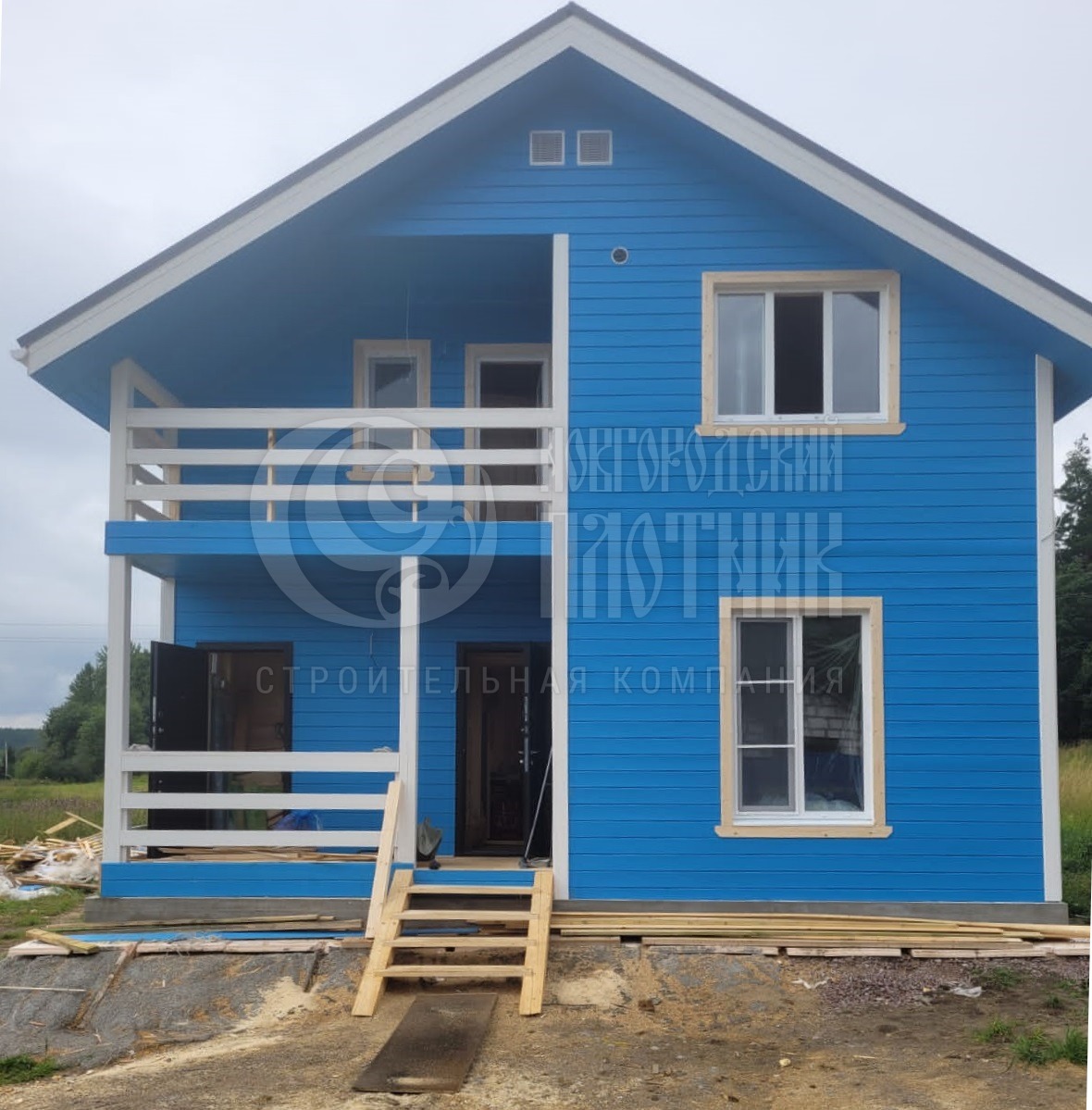 В июле 2022г завершилось строительство каркасного дома по проекту Д-34. Каркас стен толщиной 200мм снаружи и внутри обшит имитацией бруса, потолки вагонкой. Утепление стен, полов и потолков - каменная вата Роквул толщиной 200мм. Окна ПВХ двухкамерные, выполнены под заказ. Кровля металлочерепица.