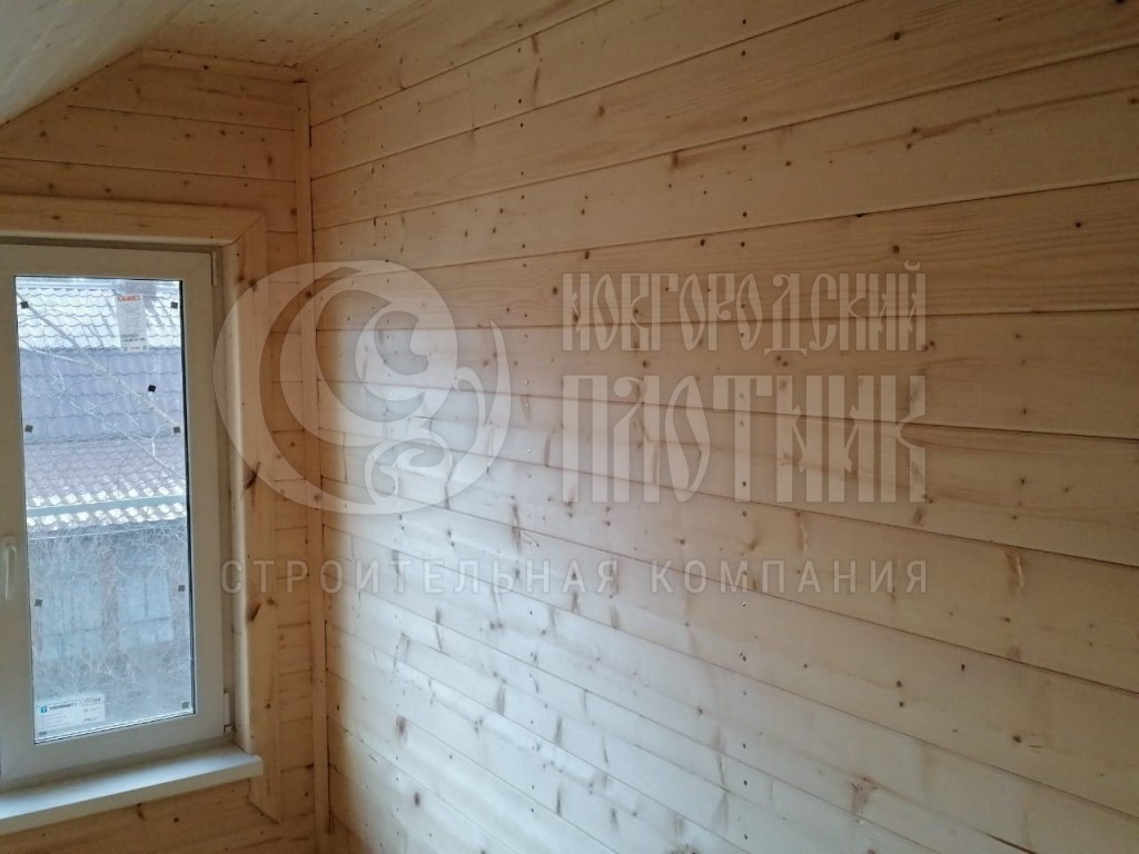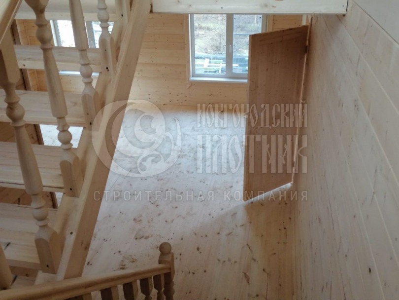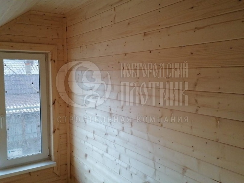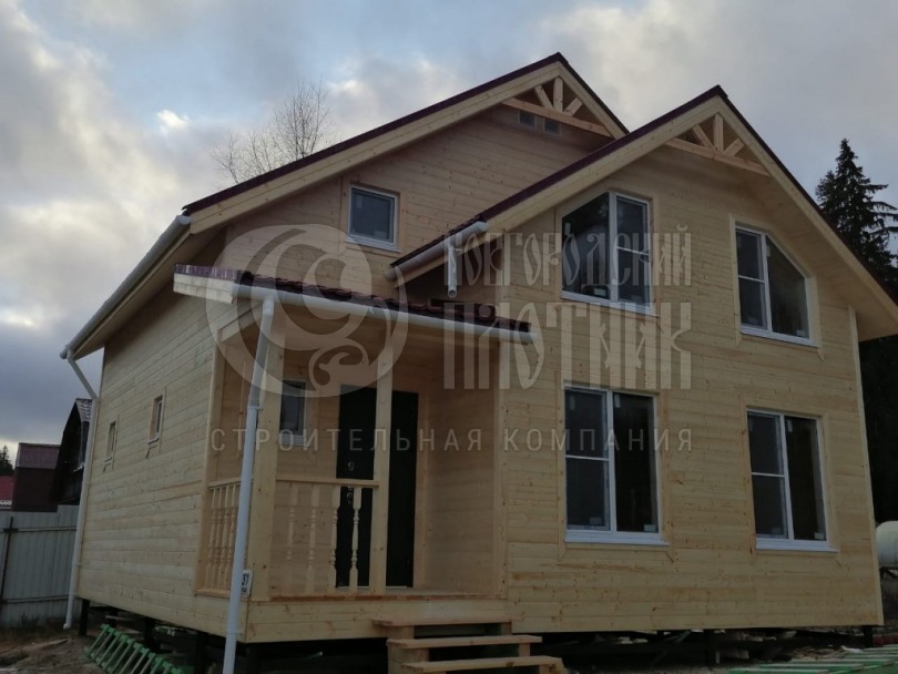 В январе 2020г. построен каркасный полутораэтажный дом 8х8м по проекту Д-86. Каркас стен снаружи и внутри обшит имитацией бруса, утепление стен - каменная вата Роквул толщиной 150мм. Окна ПВХ предоставлены Заказчиком. Кровля металлочерепица.