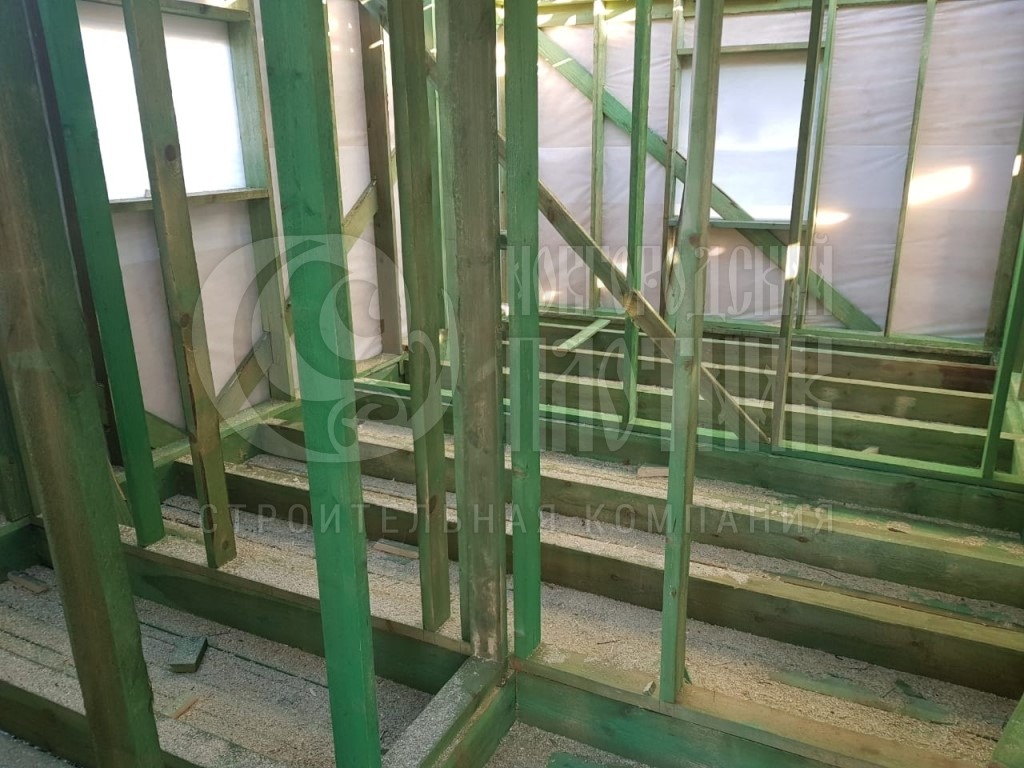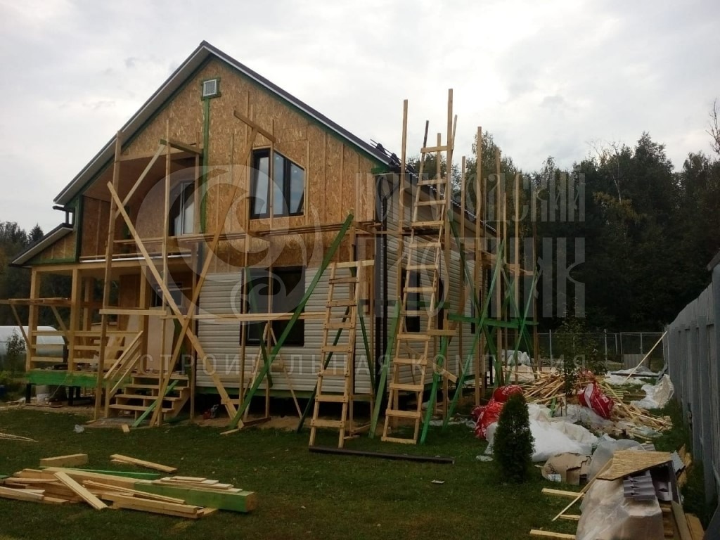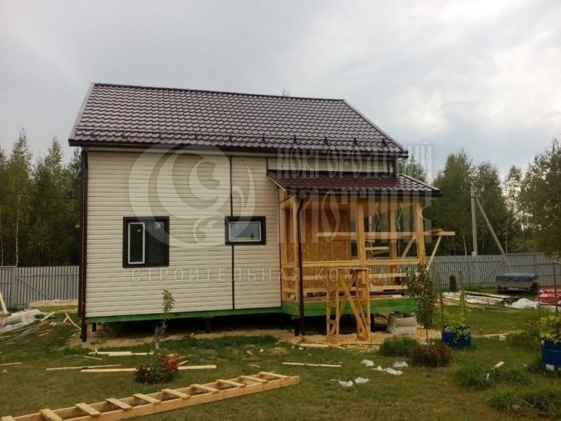 Строительство дома завершилось в августе 2018г. Каркас стен снаружи обшит ОСБ 12мм и сайдингом Docke (цвет сливки), внутри вагонкой камерной сушки. Утепление стен, полов и потолков - каменная вата Роквул толщиной 150мм. Окна ПВХ выполнены под заказ. Кровля металлочерепица.