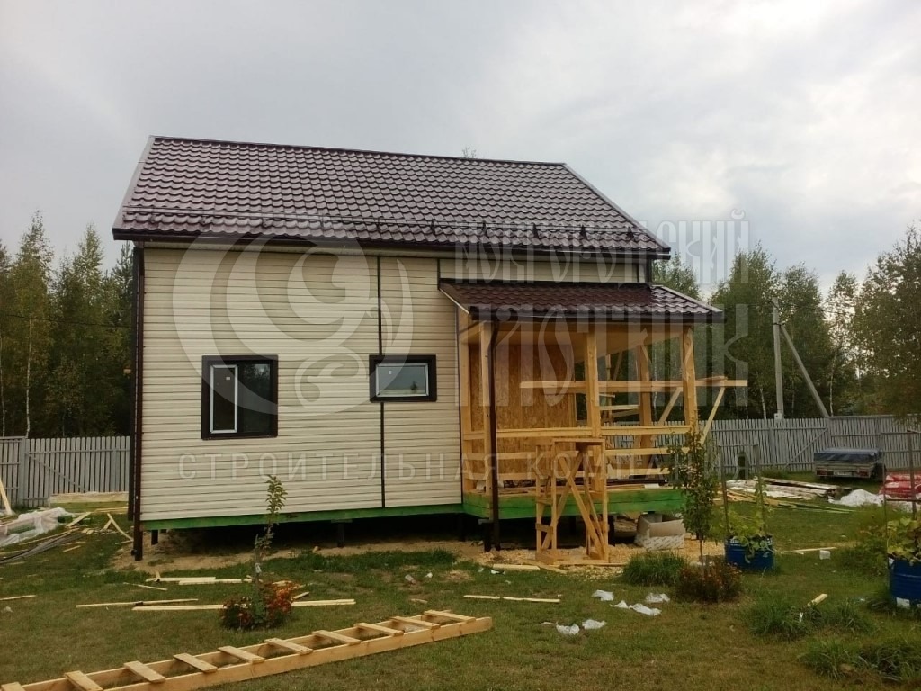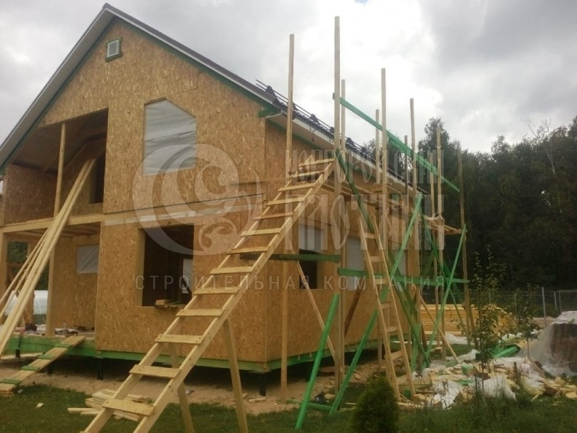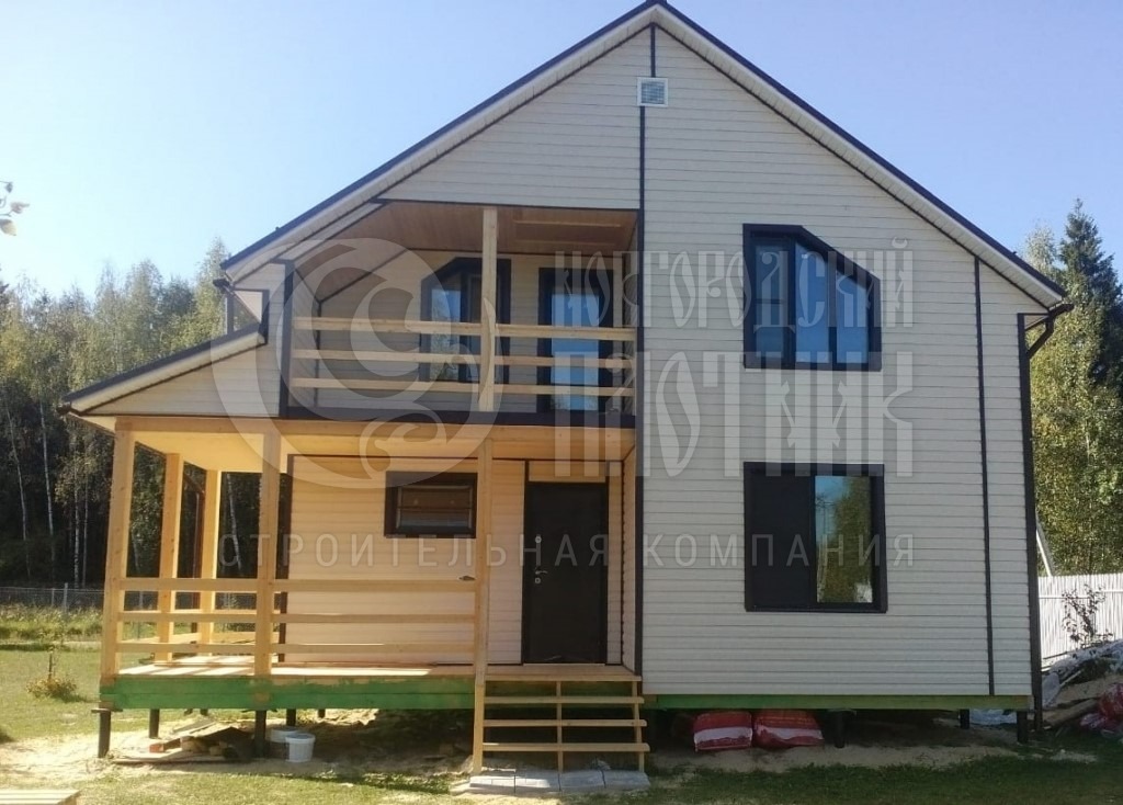 Каркасный дом 8х8м с балконом и террасой (проект Д-34)