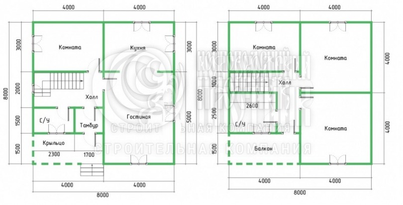 Каркасный дом 8х8м с балконом и террасой (проект Д-34)