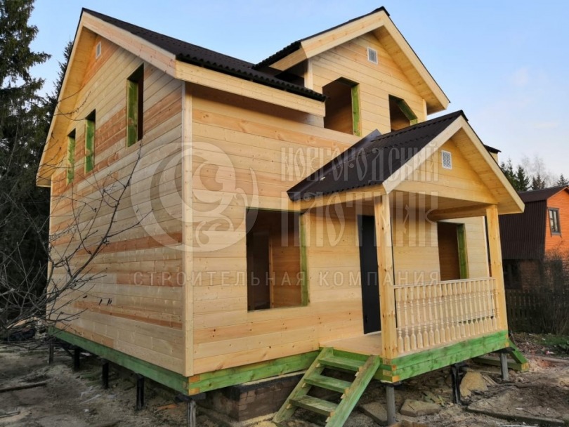 В ноябре 2019г. завершилось строительство каркасного дома 8х8м. Каркас стен толщиной 150мм снаружи обшит имитацией бруса, внутри вагонкой. Утепление стен, полов и потолков - каменная вата Роквул 150мм. Кровля ондулин.