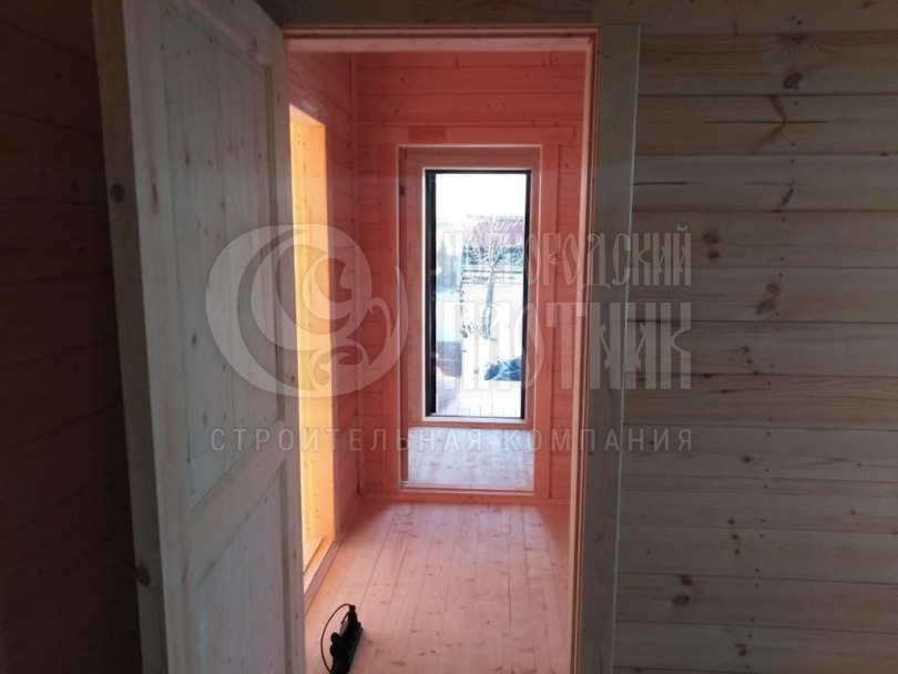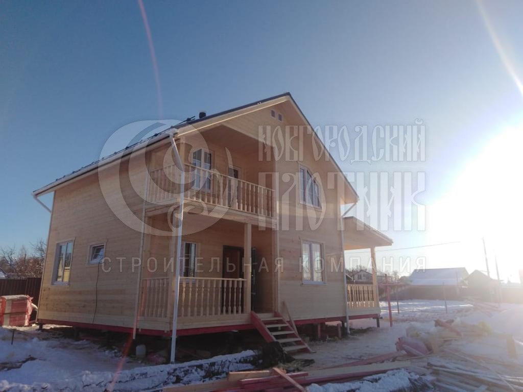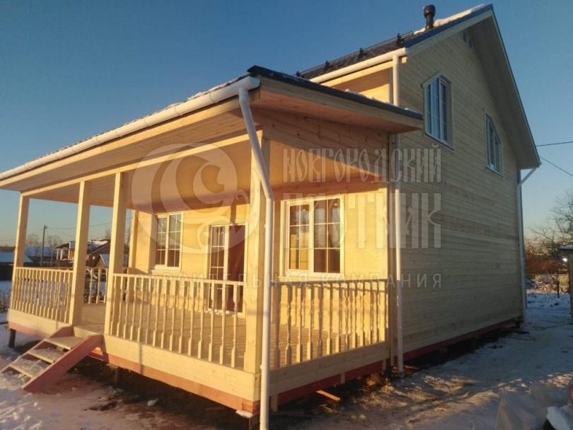 В декабре 2020г. завершилось строительство каркасного полутораэтажного дома по проекту Д-34. Каркас стен снаружи и внутри обшит вагонкой камерной сушки (толщина вагонки 16мм). Утепление стен - каменная вата Роквул толщиной 150мм. Кровля металлочерепица. Окна ПВХ выполнены под заказ.