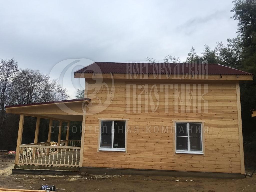 В январе 2021г. завершилось строительство каркасного полутораэтажного дома 8х8м по проекту Д-25. Каркас стен толщиной 150мм внутри и снаружи обшит имитацией бруса, потолки подшиты вагонкой. Утепление стен, полов и потолков - каменная вата Роквул 150мм. На первом этаже полы и утеплитель отсутствуют, так как заказчик планирует сделать теплые полы (фундамент монолитная плита подготовлен Заказчиком заранее). Кровля ондулин. Окна ПВХ предоставлены Заказчиком.