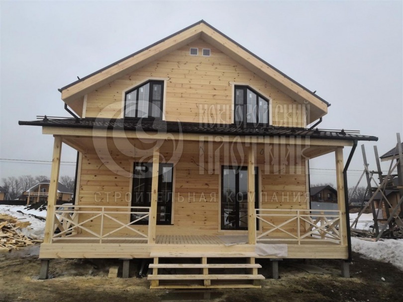 В марте 2021г. завершилось строительство каркасного дома на основе проекта Д-72. Каркас стен толщиной 200мм снаружи и внутри обшит имитацией бруса, потолки вагонкой. Утепление стен, полов и потолков - каменная вата Роквул толщиной 200мм. Окна ПВХ выполнены под заказ. Кровля металлочерепица.