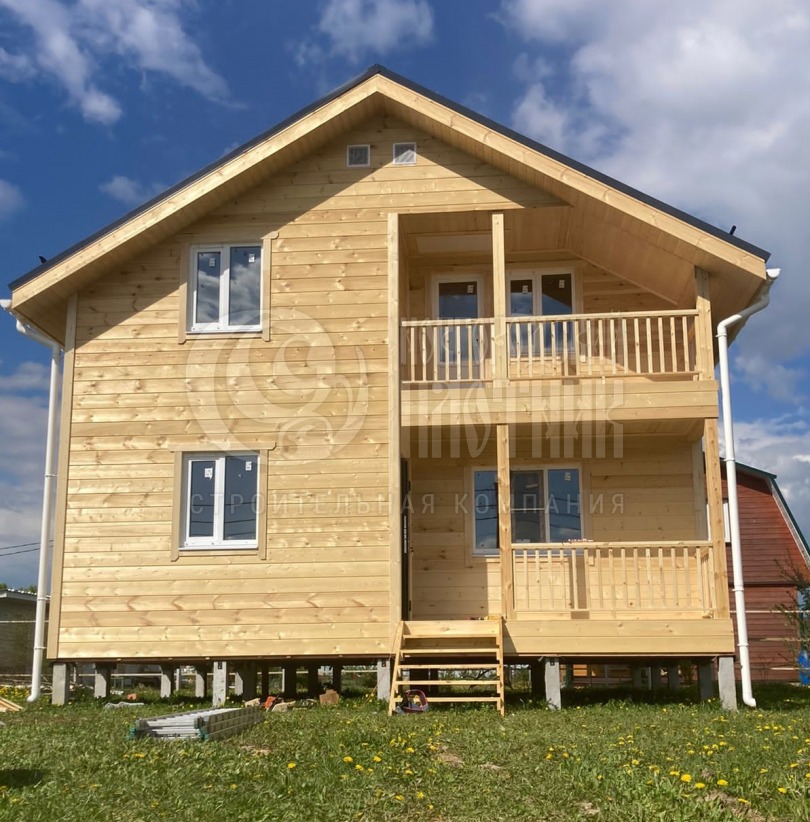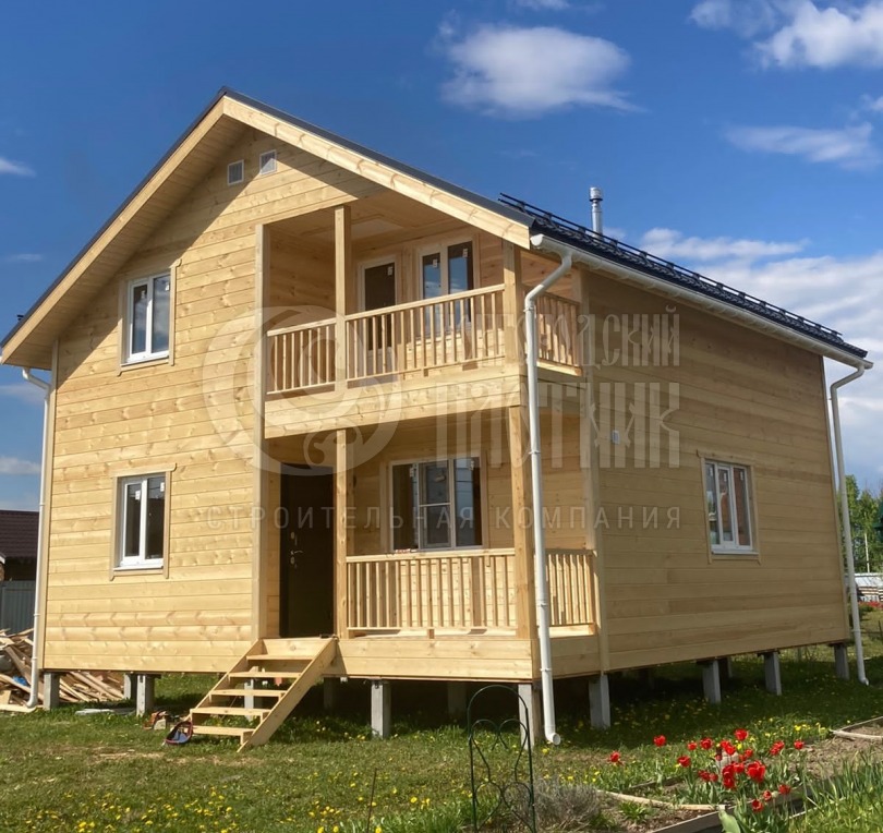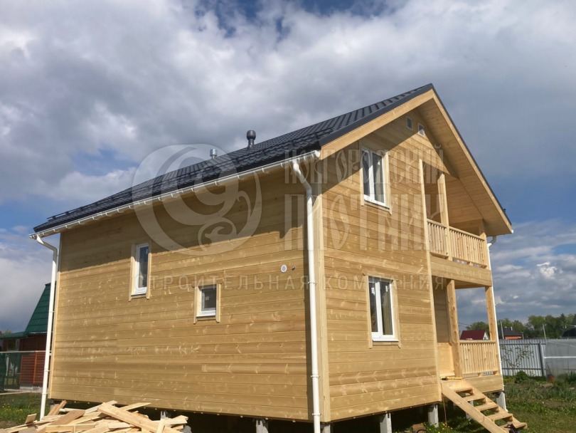 В мае 2023г завершилось строительство каркасного дома 8х9м по проекту Д-72. Каркас выполнен из сухой строганой доски, снаружи и внутри обшит имитацией бруса, потолки вагонкой. Утепление стен, полов и потолков - Роквул 200мм. Окна ПВХ двухкамерные. Кровля металлочерепица.