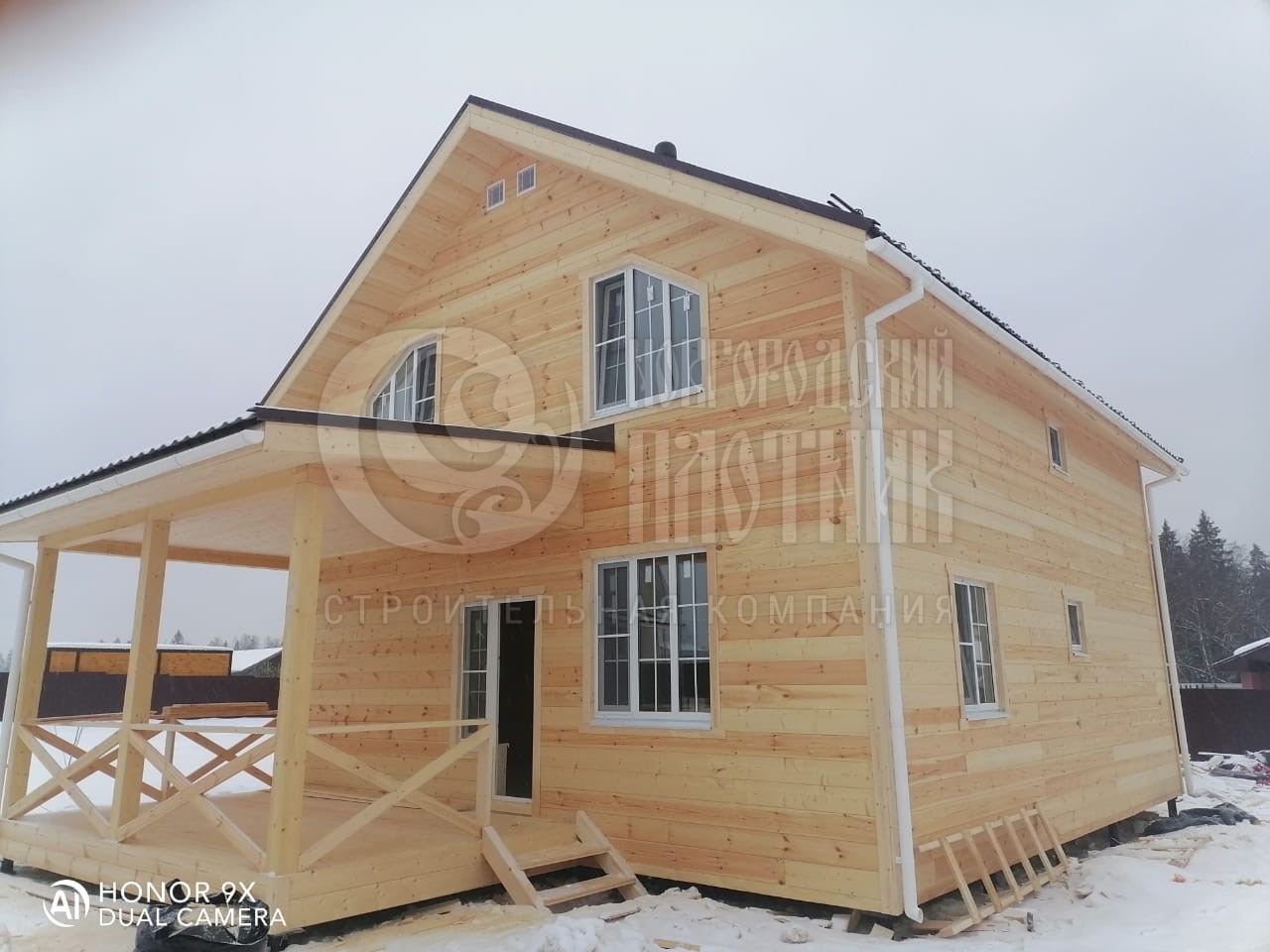 В январе 2021г. завершилось строительство каркасного дома по проекту Д-72. Каркас стен толщиной 150мм снаружи обшит Белтермо и имитацией бруса, внутри стены обшиты имитацией бруса, потолки вагонкой. Утепление полов и потолков - каменная вата Роквул толщиной 200мм, стены утеплены в 150мм. Окна ПВХ выполнены под заказ. Кровля металлочерепица.