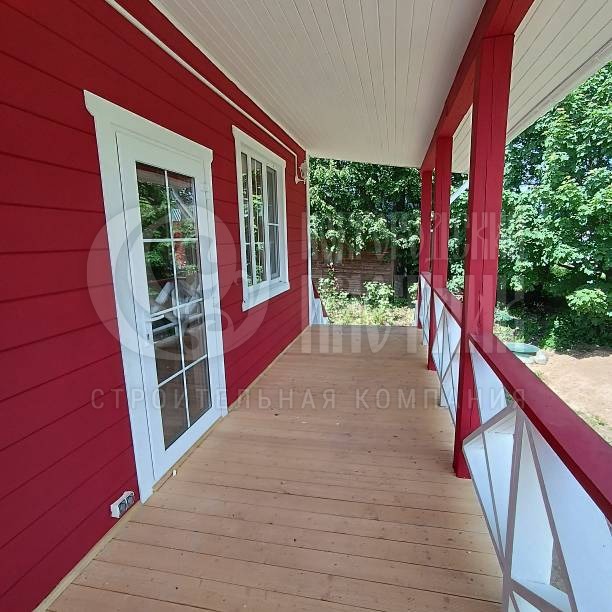 Каркасный дом 8х9м плюс 2х8м терраса построен по проекту Д-72. Каркас стен толщиной 150мм снаружи обшит имитацией бруса, внутри вагонкой. Утепление стен, полов и потолков - Роквул 150мм. Окна ПВХ выполнены под заказ. Покрытие крыши - металлочерепица.