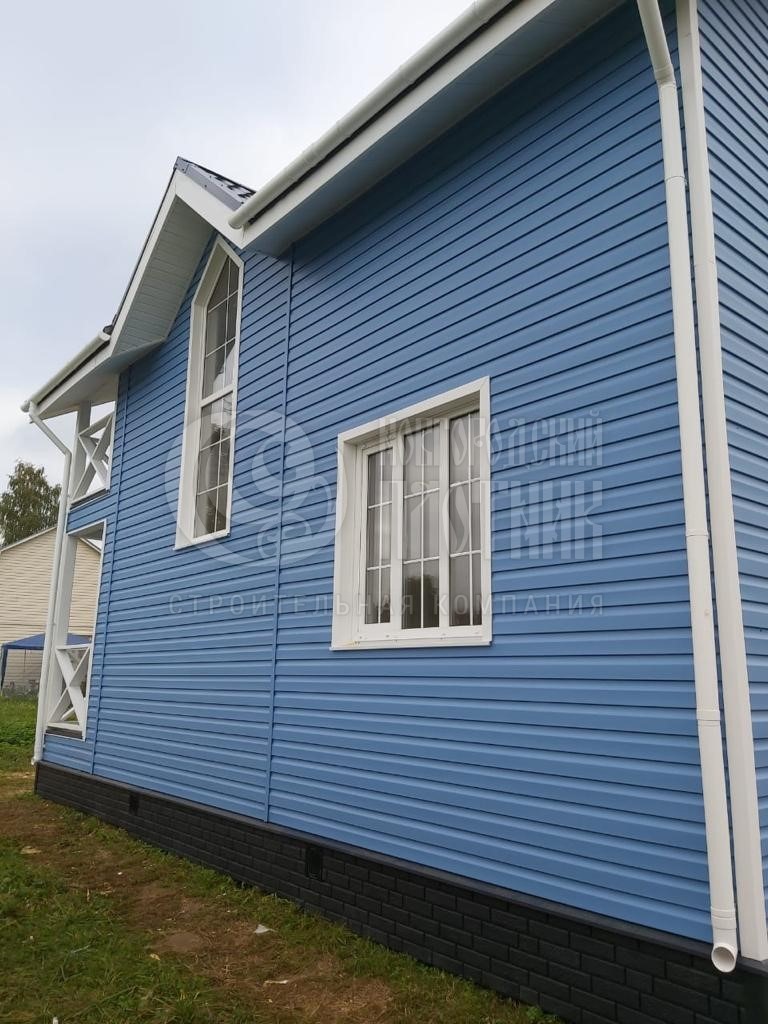 В сентябре 2021г. завершилось строительство каркасного дома по проекту Д-72. Каркас стен толщиной 150мм снаружи обшит сайдингом Дёке, внутри: 1-й этаж вагонкой, второй имитацией бруса. Утепление стен - каменная вата Роквул толщиной 150мм, полы и потолки утеплены в 200мм. Окна ПВХ выполнены под заказ. Кровля металлочерепица.
