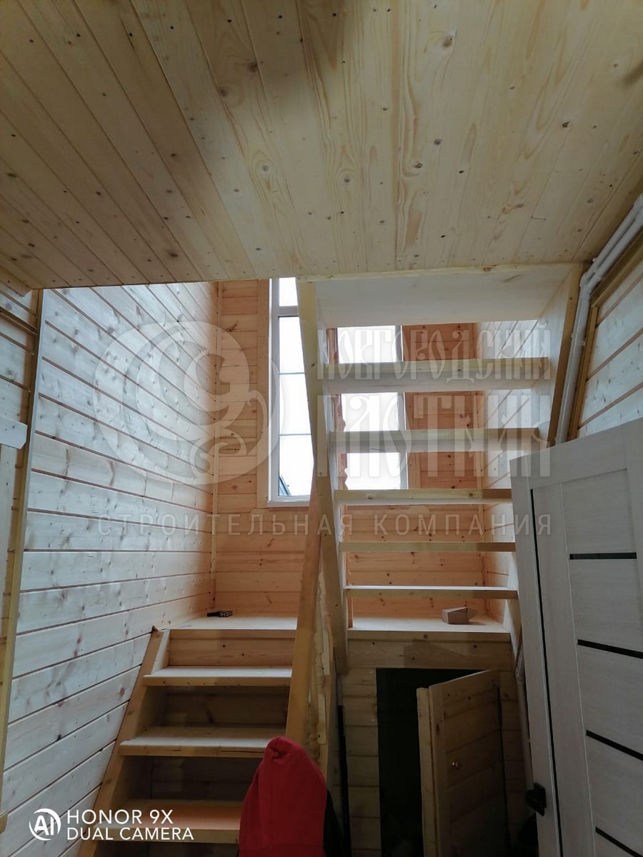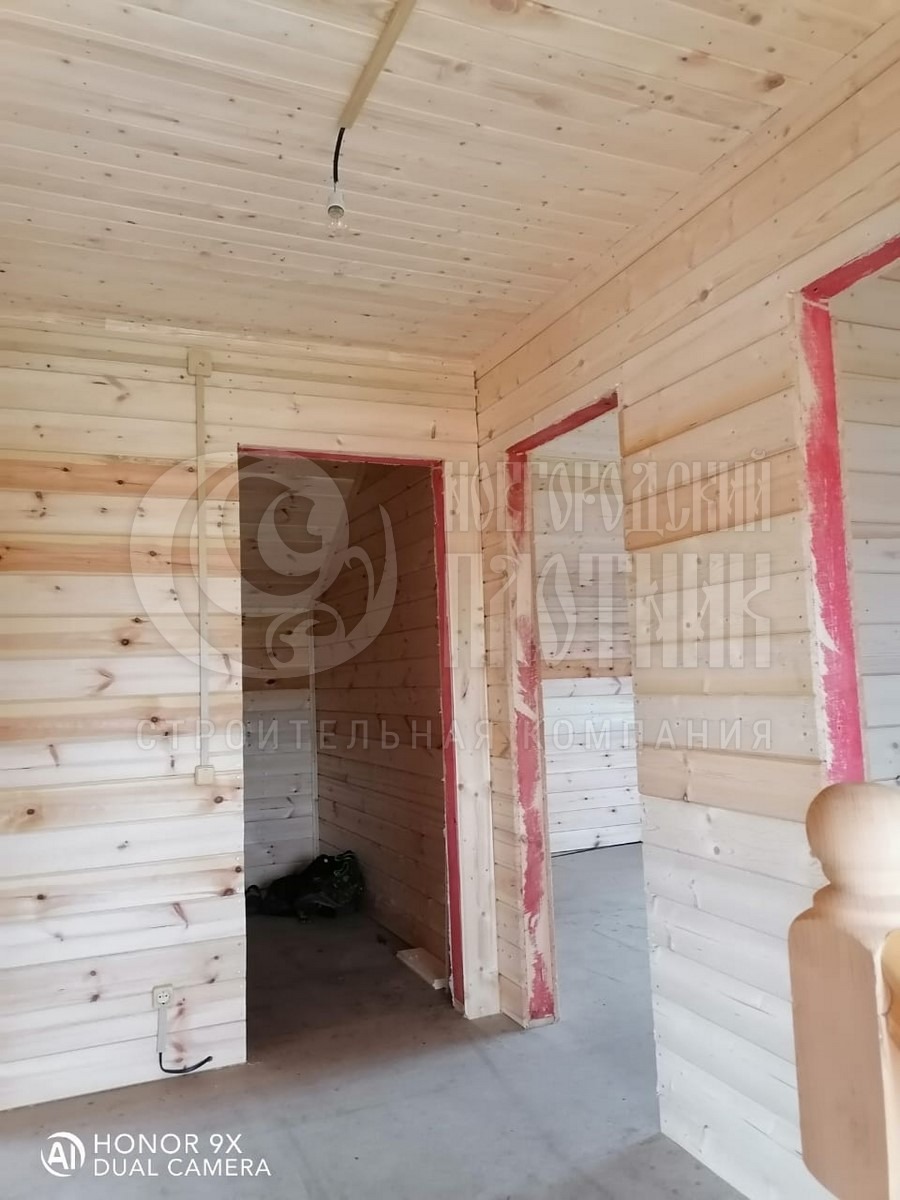 В сентябре 2020г. завершилось строительство каркасного дома по проекту Д-72. В планировку внесли небольшие изменения: зашили балкон, добавили небольшую открытую террасу. Каркас стен толщиной 150мм снаружи и внутри обшит имитацией бруса, потолки вагонкой. Утепление стен - каменная вата Роквул 150мм, полов и потолков - Роквул 200мм. Окна ПВХ выполнены под заказ. Кровля металлочерепица. В процессе строительства бригадой выполнены дополнительные работы по отделке дома.