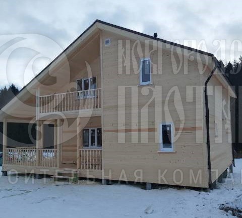 В феврале 2023г. завершилось строительство каркасного дома по проекту Д-91. Каркас стен толщиной 150мм снаружи и внутри обшит имитацией бруса, потолки вагонкой. Утепление полов 1-го этажа Роквул 200мм, стены, межэтажка, потолок утеплены Роквулом 150мм. Окна ПВХ двухкамерные. Кровля - ондулин.
