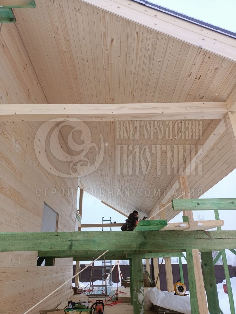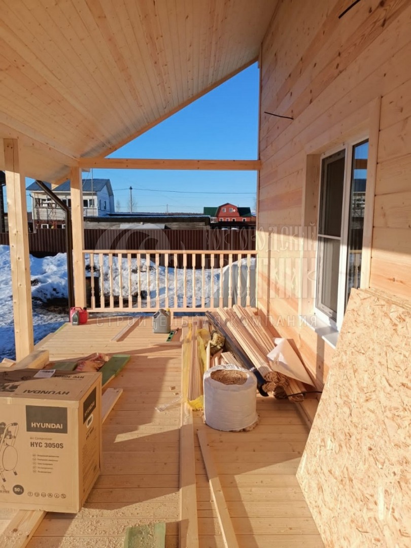 В марте 2022г. завершилось строительство каркасного дома по проекту Д-91. каркас стен толщиной 200мм снаружи обшит имитацией бруса, внутри вагонкой. Утепление стен, полов и потолков - каменная вата Роквул толщиной 200мм. Кровля металлочерепица. Окна ПВХ выполнены под заказ. Дополнительно выполнены антисептирование и сушка всего каркаса.