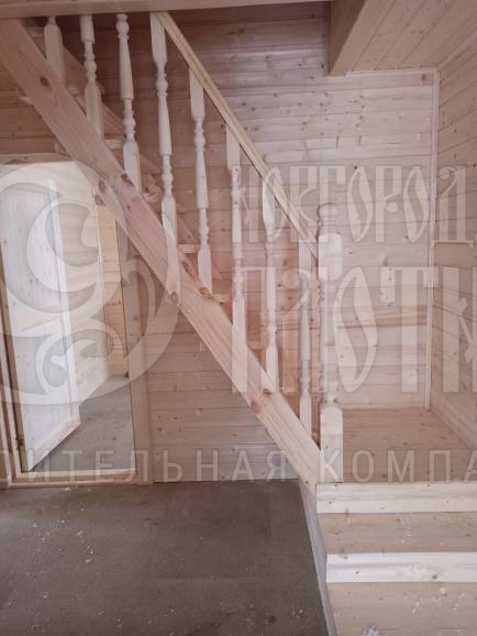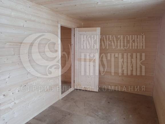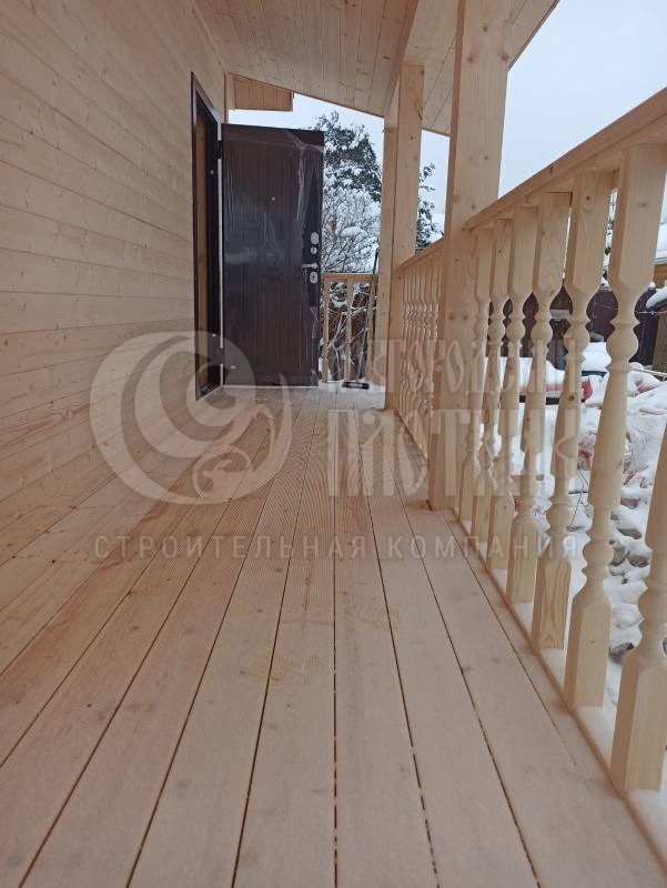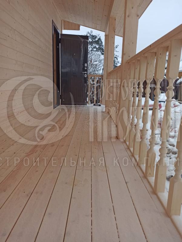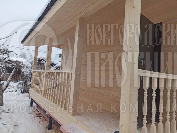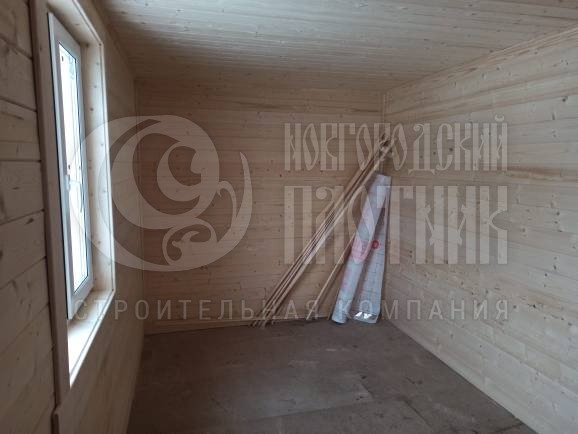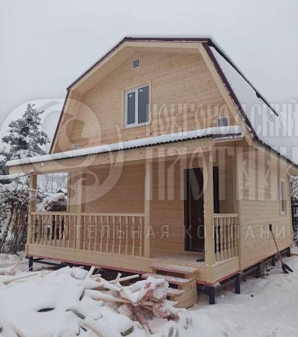 В декабре 2023г. завершилось строительство каркасного дома на основе проекта Д-7. Небольшое крыльцо заменено на террасу. Каркас дома снаружи и внутри обшит вагонкой камерной сушки (толщины вагонки 16мм), утепление стен, полов и потолков Роквул 150мм. Кровля ондулин. Окна ПВХ выполнены под заказ. Дополнительно выполнено антисептирование всего каркаса.