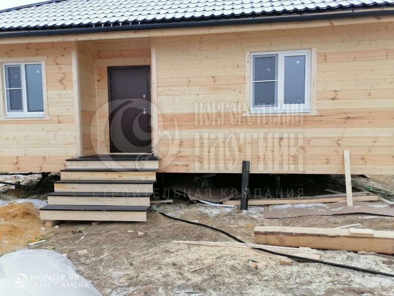 В декабре 2020г. завершилось строительство каркасного дома на основе проекта Д-51 с небольшой перепланировкой. Каркас стен толщиной 150мм снаружи обшит плитами Белтермо и имитацией бруса, внутри стены и потолки обшиты имитацией бруса. Утепление стен - каменная вата Роквул толщиной 150мм, полы и потолки утеплены в 200мм. Кровля металлочерепица серого цвета. Окна ПВХ выполнены под заказ. На полах Квик дек 22мм. В с/у стены и полы обшиты ЦСП 16мм. На террасе и крыльце уложена террасная композитная доска.